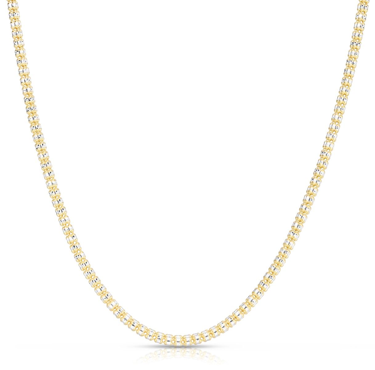 14K Gold 18" Two Tone Finish 3.14mm Diamond Cut/Textured Fancy Ice Chain with Lobster Clasp