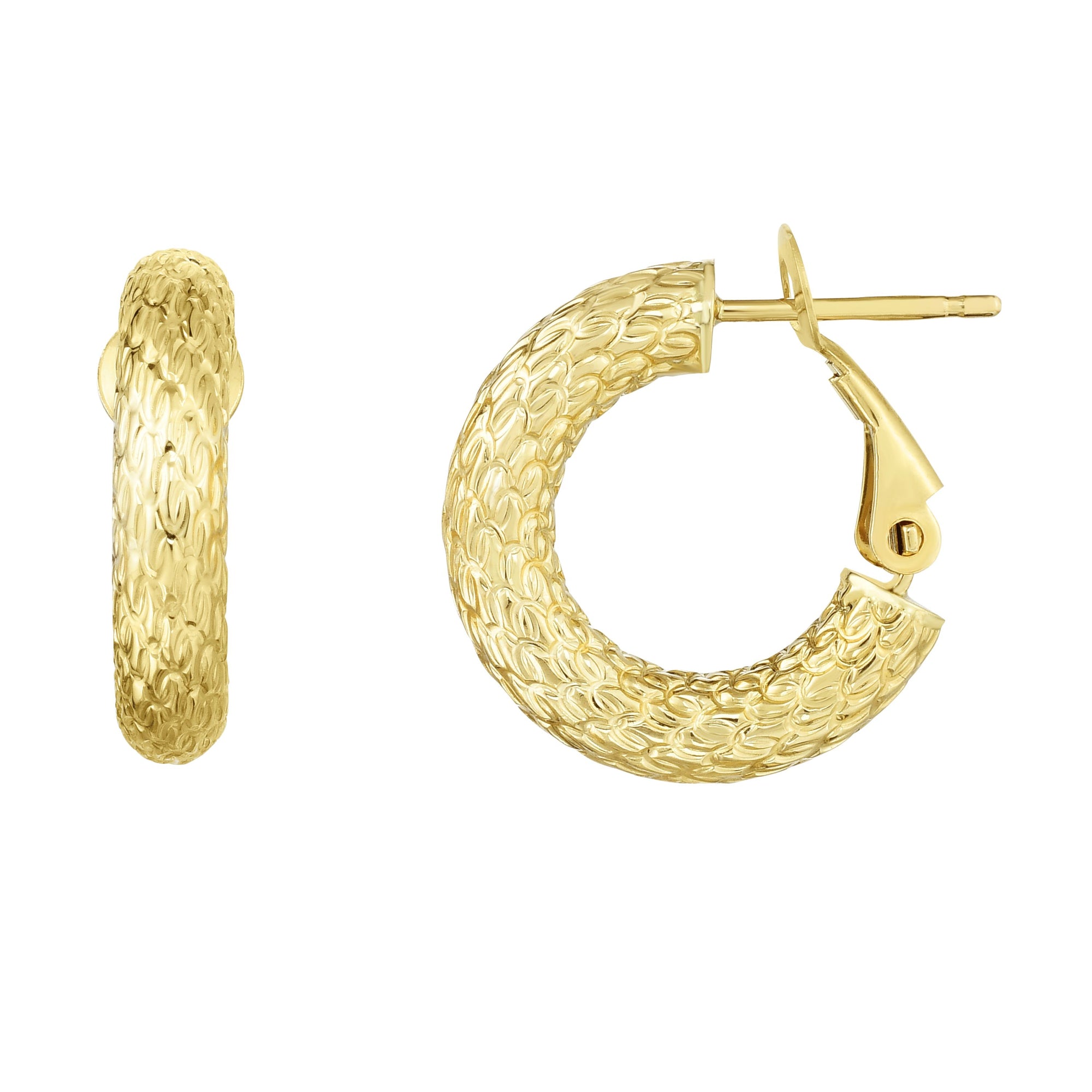 14K Yellow Gold 4x10mm Textured Omega Back Hoop Earrings