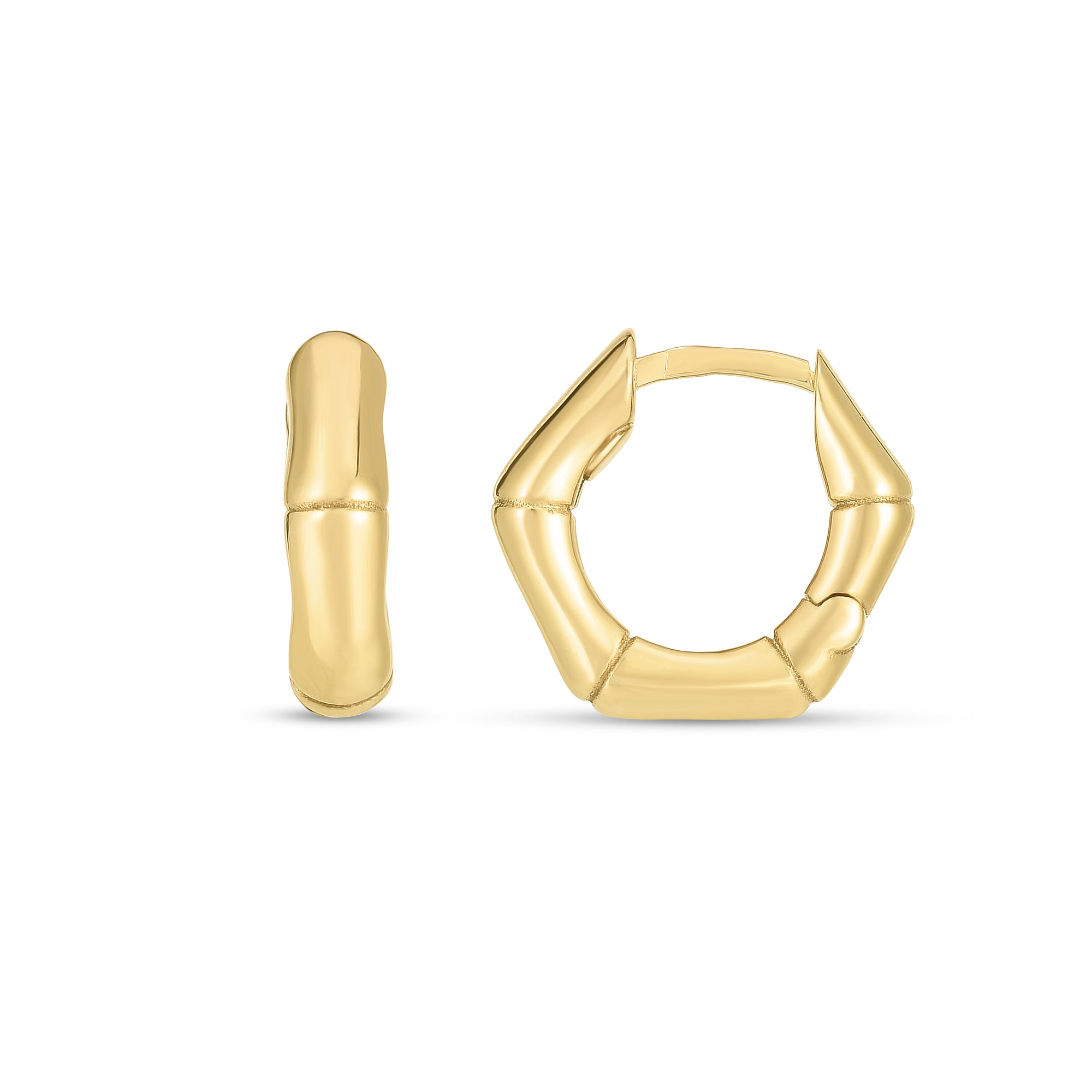 14K Yellow Gold Bamboo Huggie Hoop Earrings