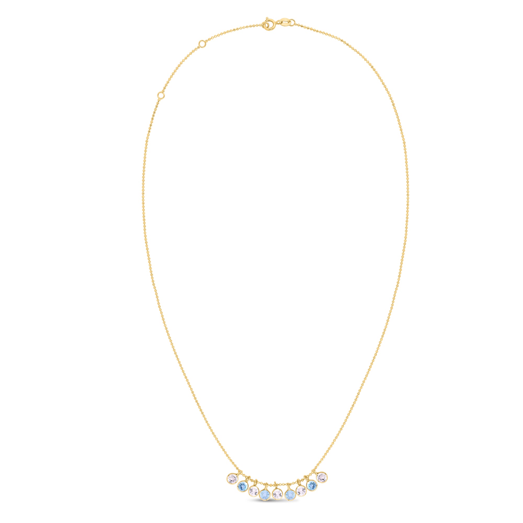 14K Yellow Gold Blue and White Topaz Dancing Drop Necklace
