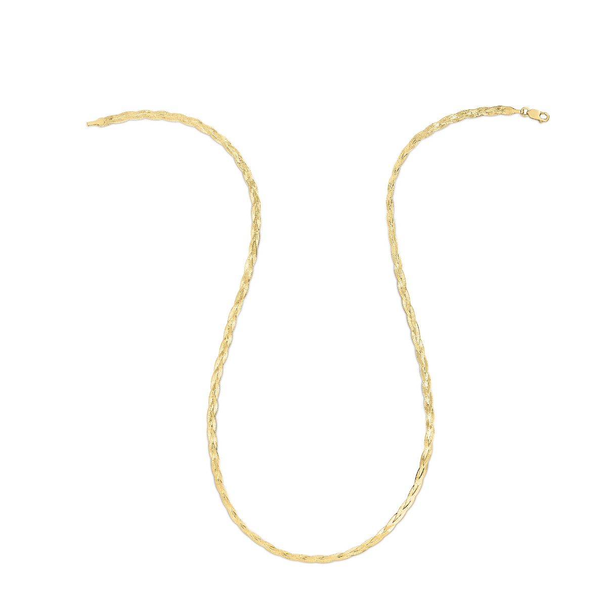 This 14K Yellow Gold Braided Herringbone Bracelet Necklace fuses three sophisticated strands of 14K gold in a unique and eye-catching herringbone pattern. The fine yellow finish and diamond-cut texturing offer a sparkling, luxurious look, while the lobster-clasp catches extra glimmer. An exclusive and elegant addition to any collection.