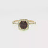 14K Yellow Gold Cushion Cut Garnet Ring With Natural Diamonds
