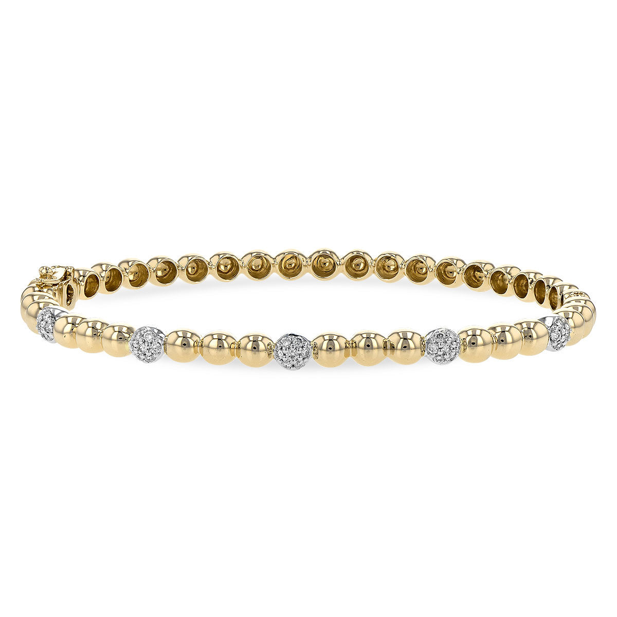 14K Yellow Gold Diamond Bubble Cluster Bangle Bracelet