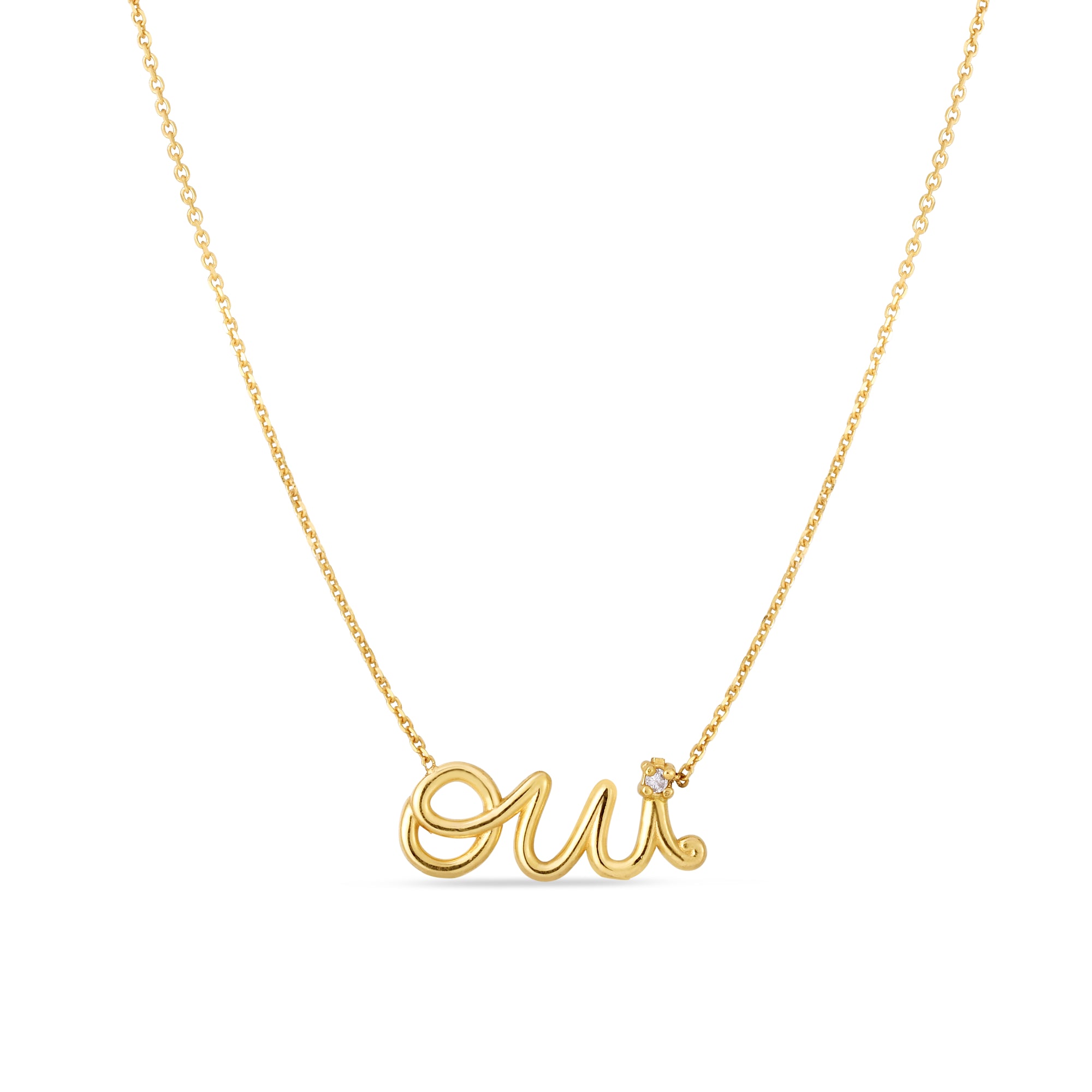 14K Yellow Gold Diamond Say "Oui" Necklace