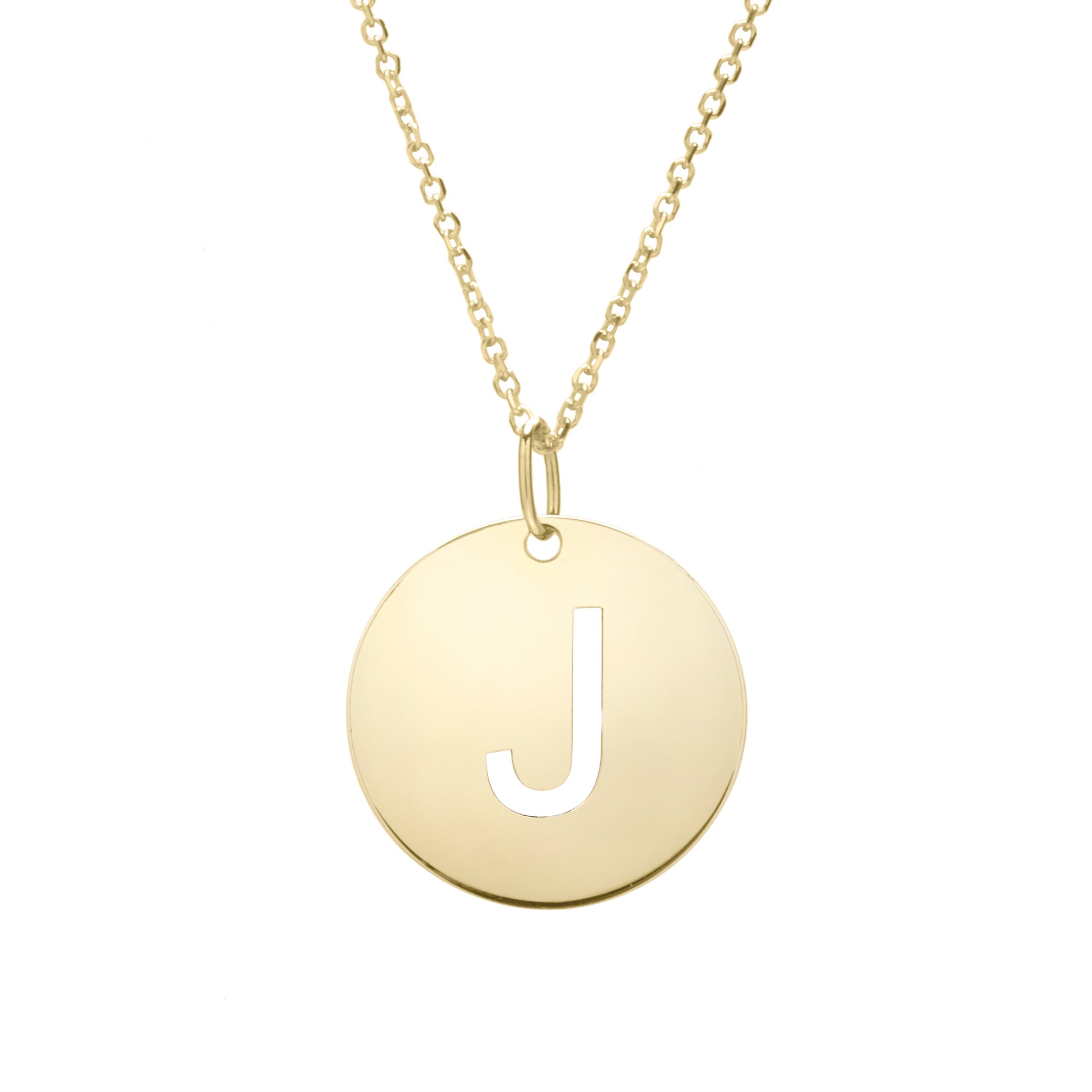 14K Yellow Gold Disc Initial J Necklace