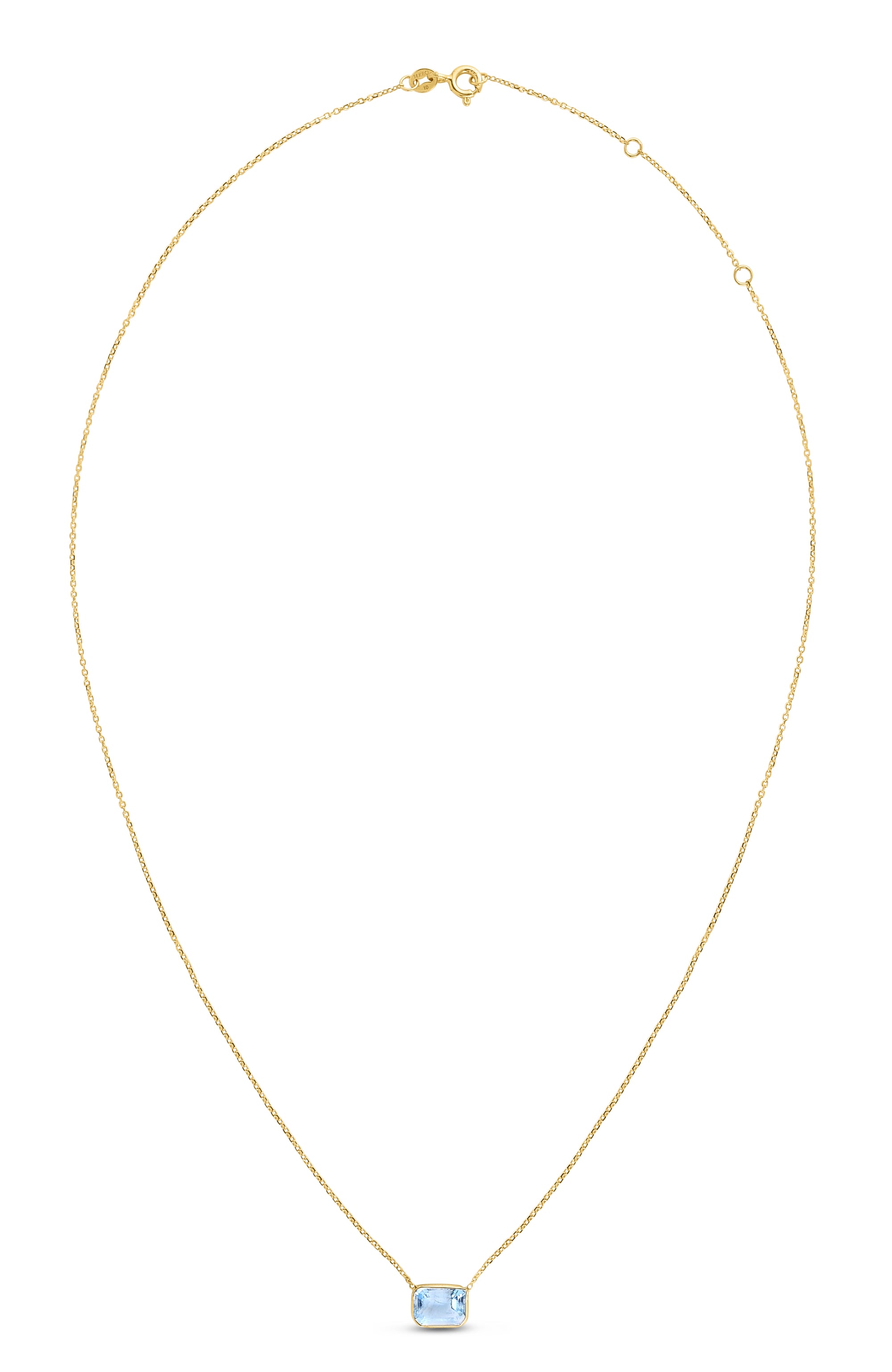 14K Yellow Gold Emerald Cut Blue Topaz Necklace