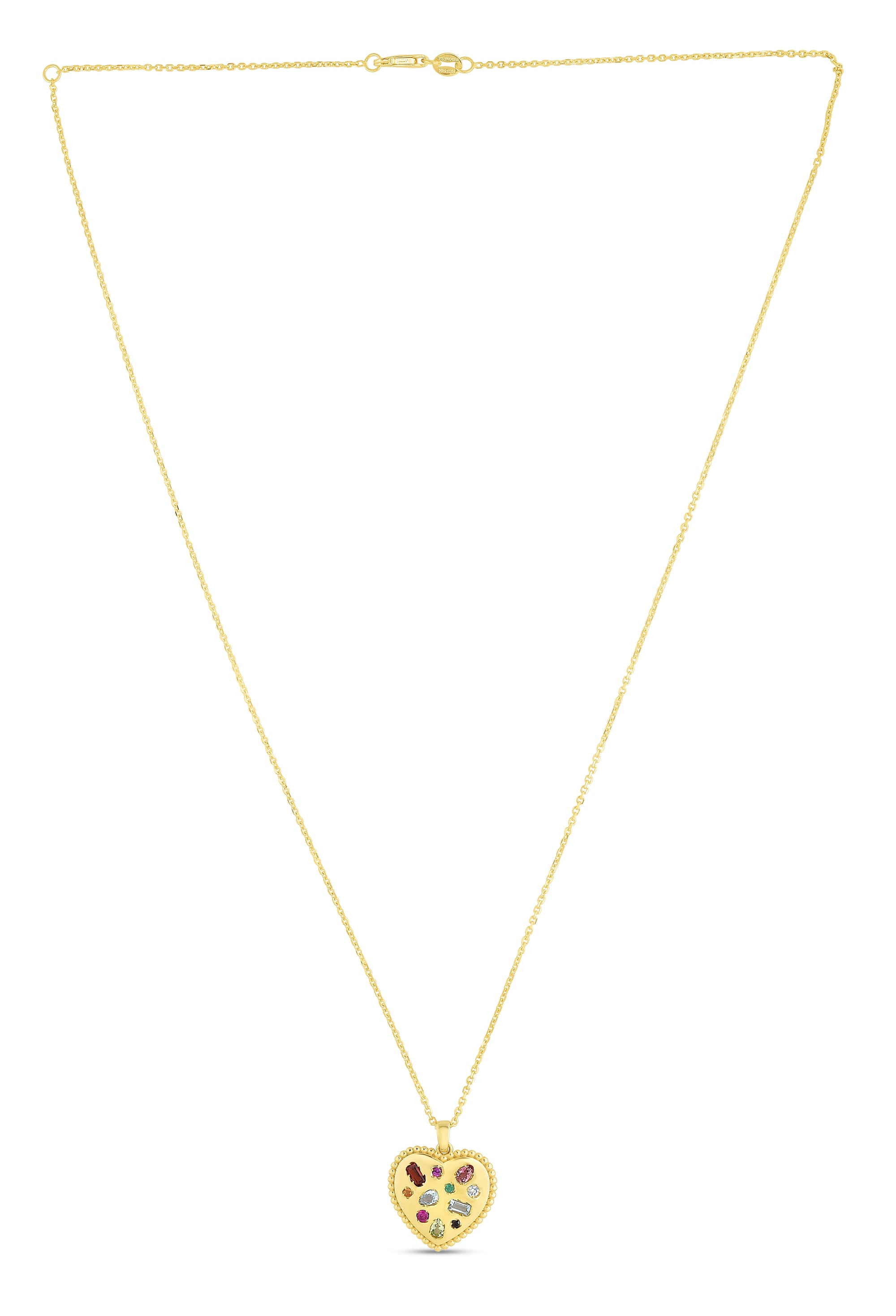 14K Yellow Gold Gemstone Inlay Heart Necklace