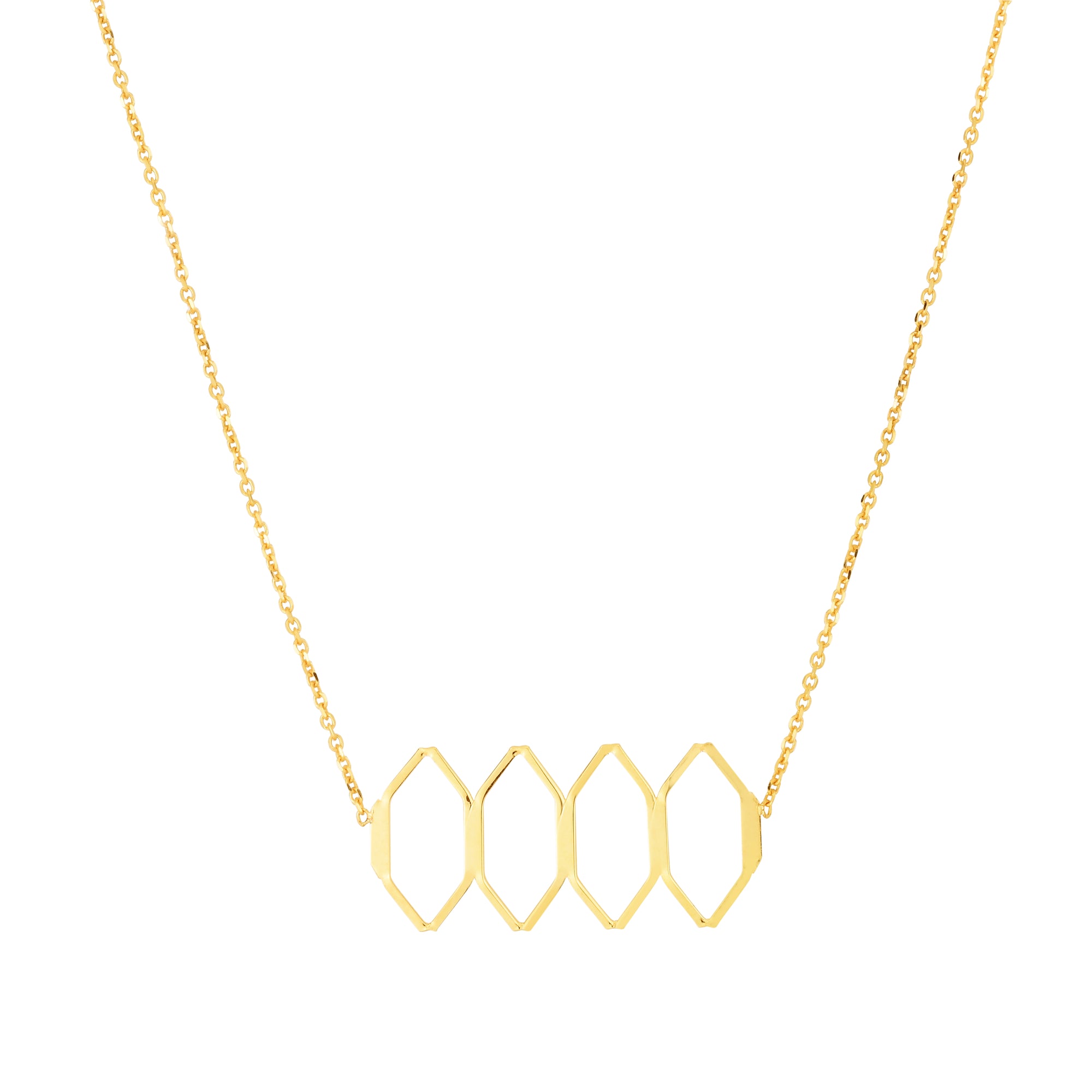 14K Yellow Gold Honeycomb Linear Necklace