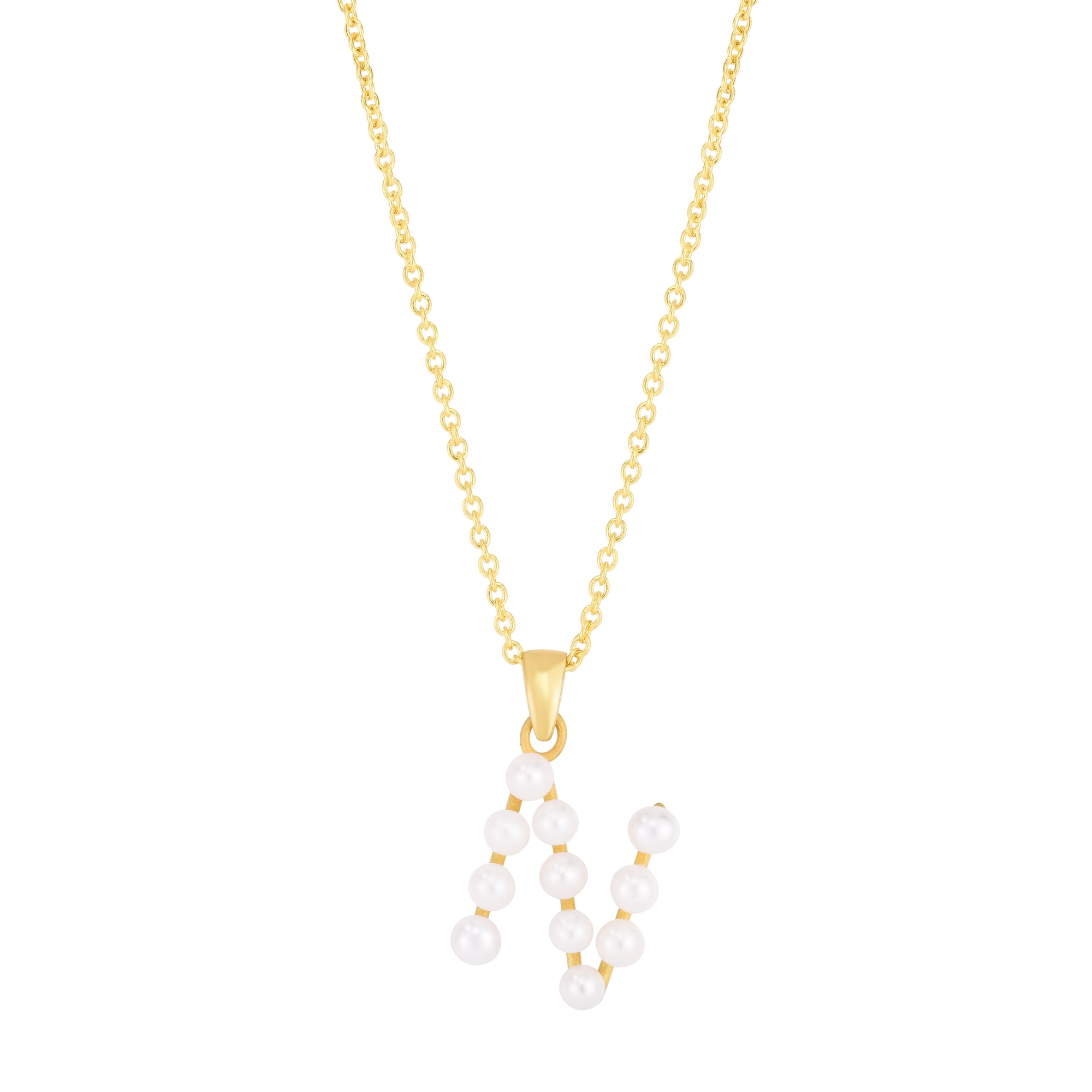14K Yellow Gold Pearl N Initial Necklace
