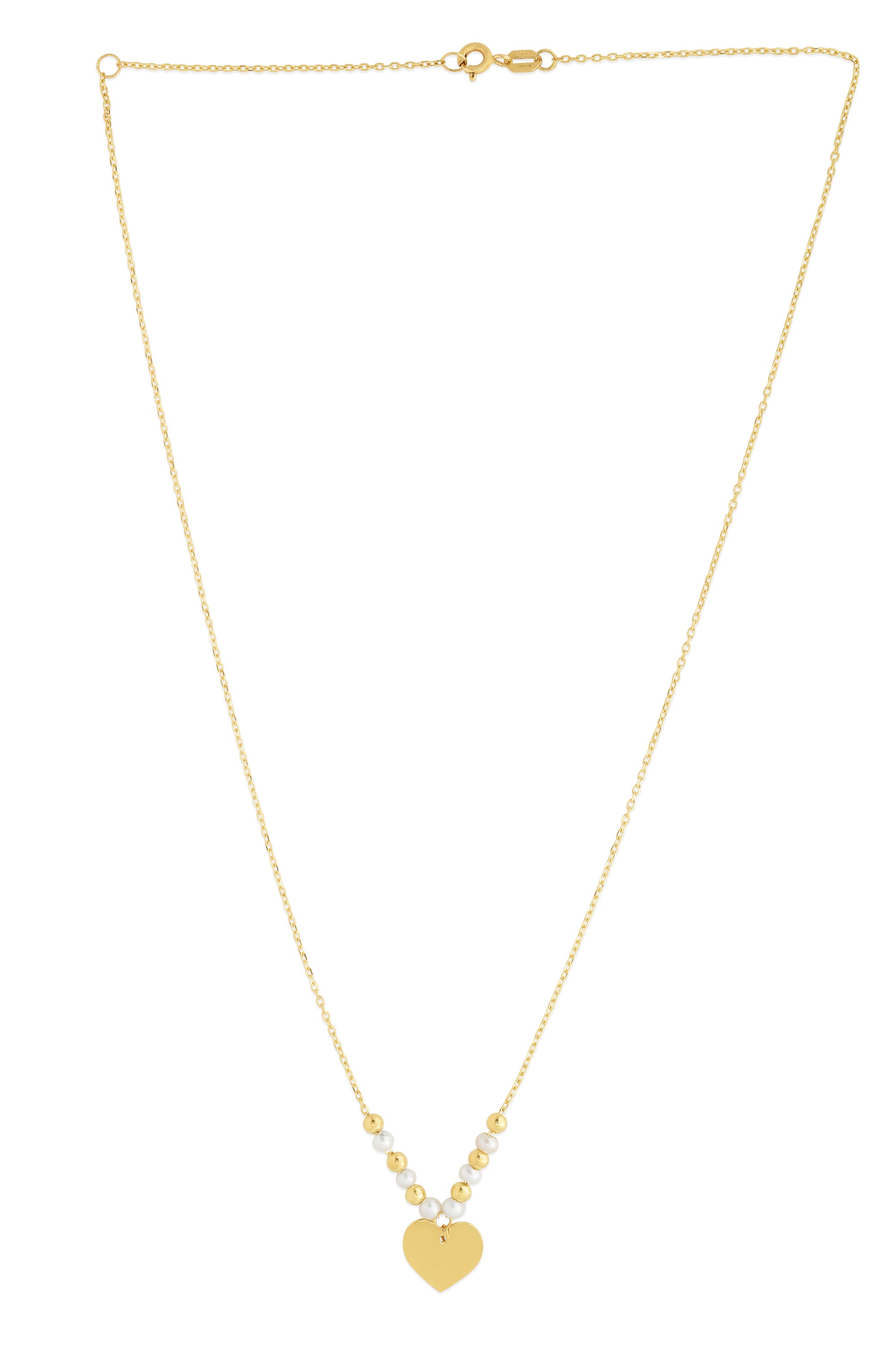 14K Yellow Gold & Pearl Pallina Heart Necklace