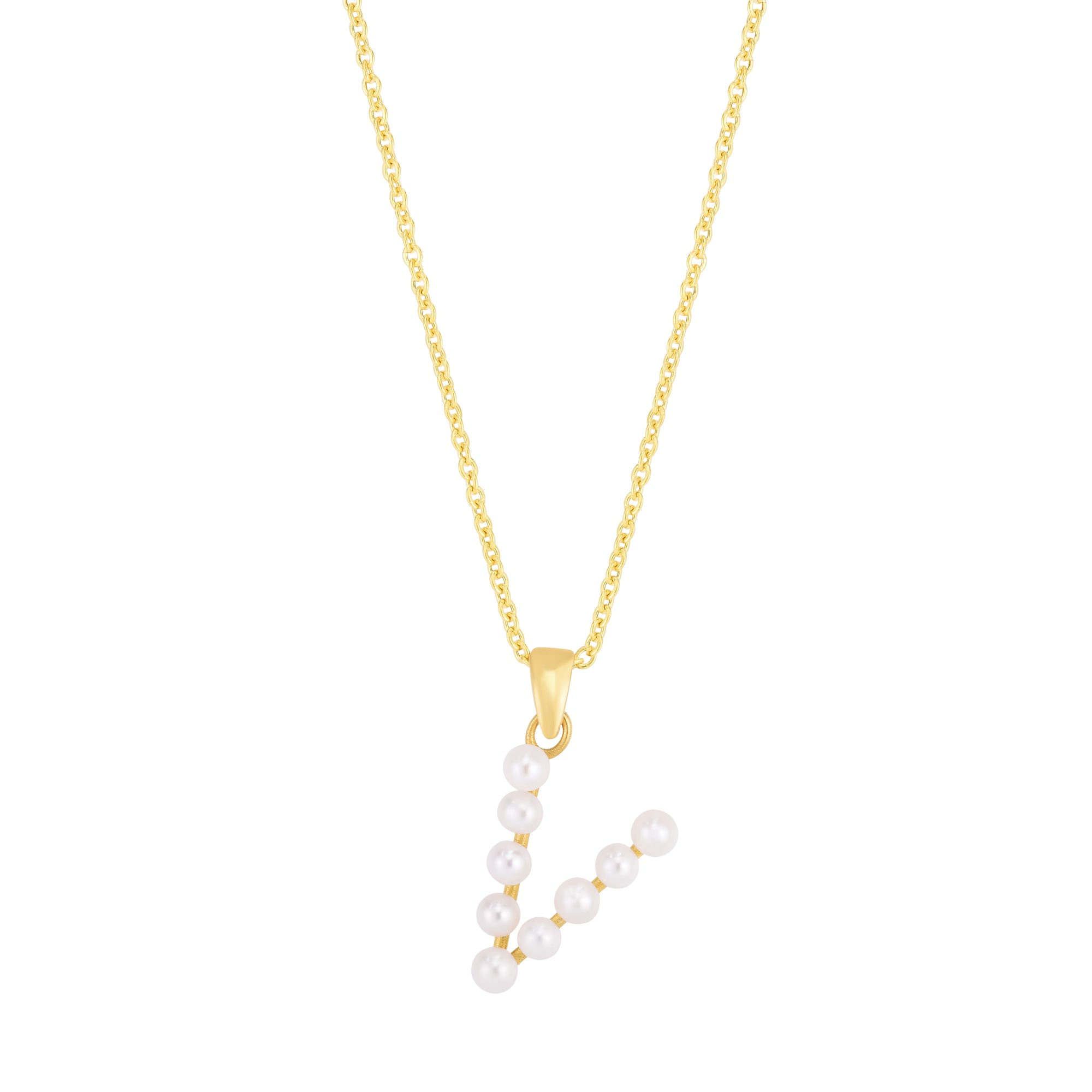 14K Yellow Gold Pearl V Initial Necklace