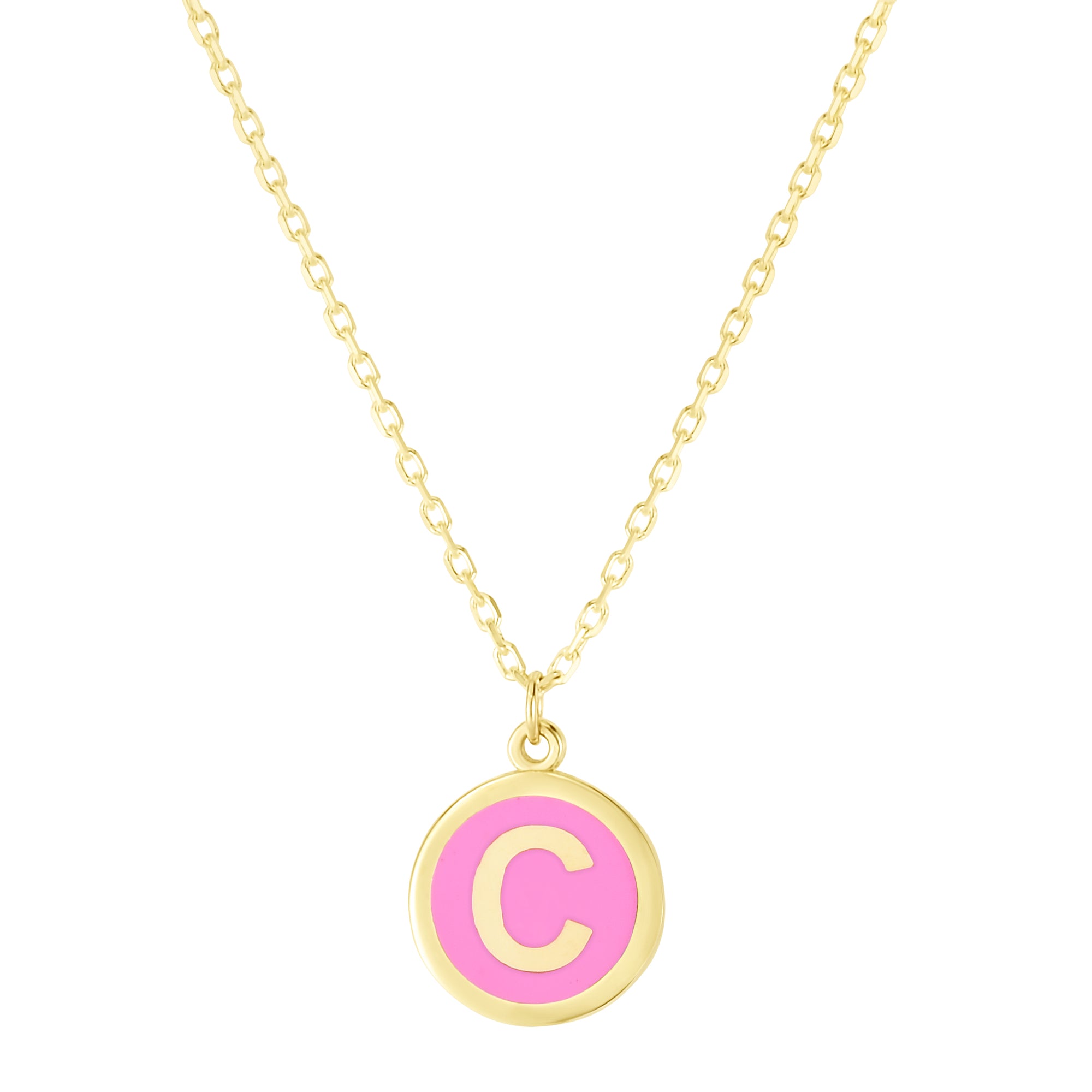 14K Yellow Gold Pink Enamel C Initial Necklace
