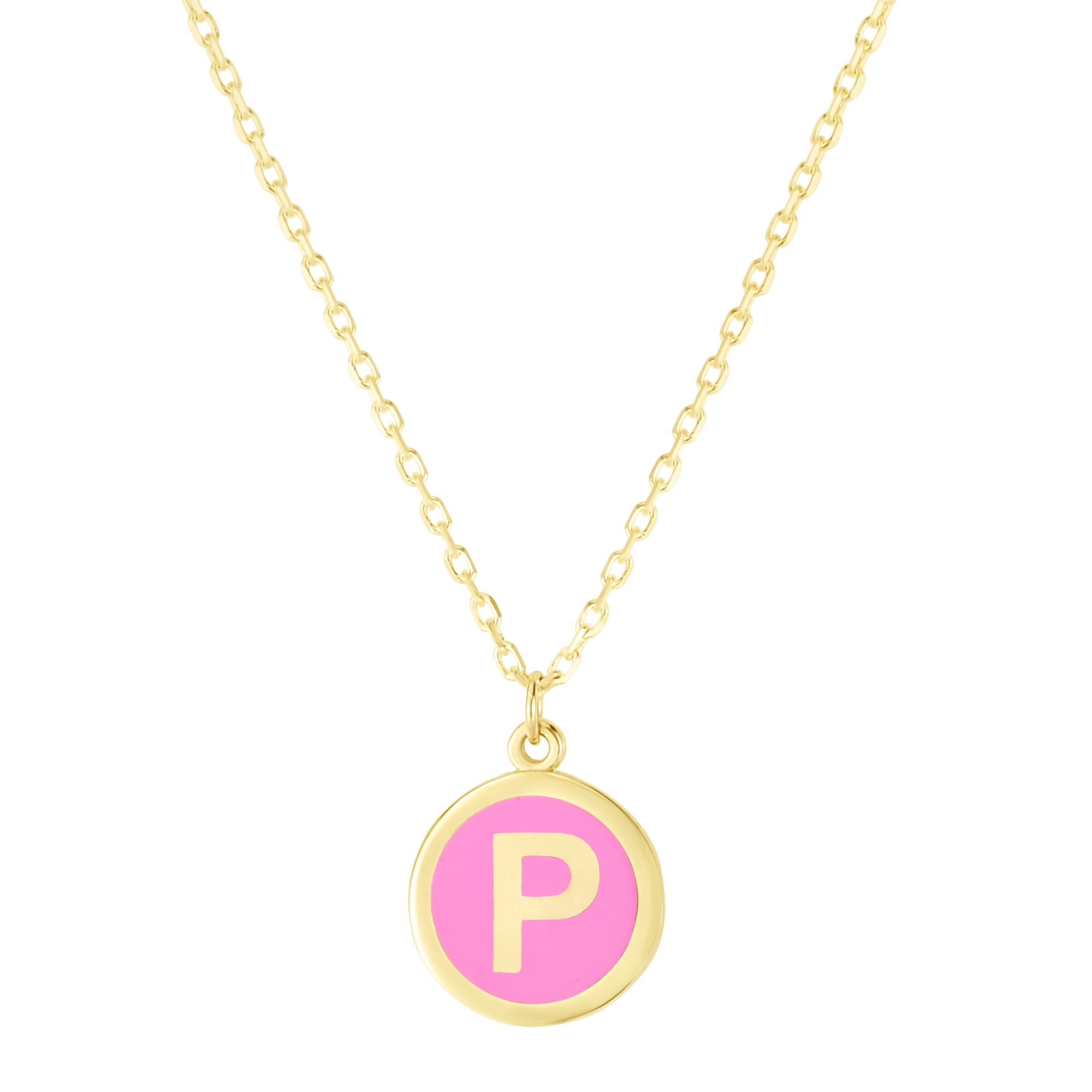 14K Yellow Gold Pink Enamel P Initial Necklace