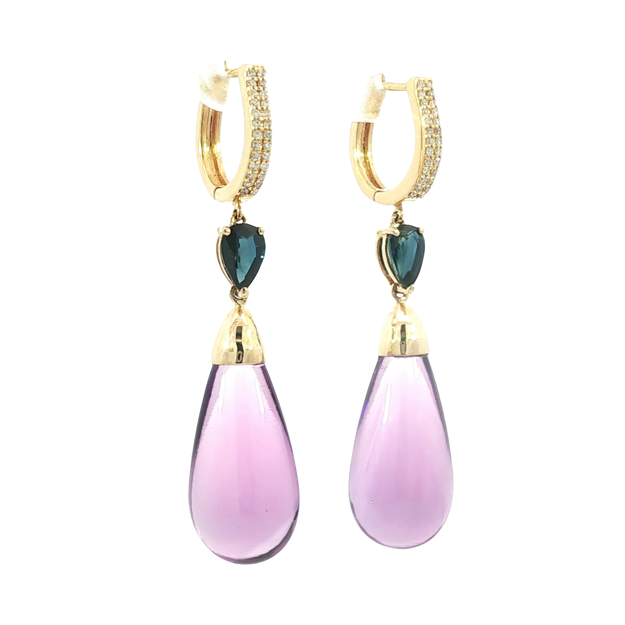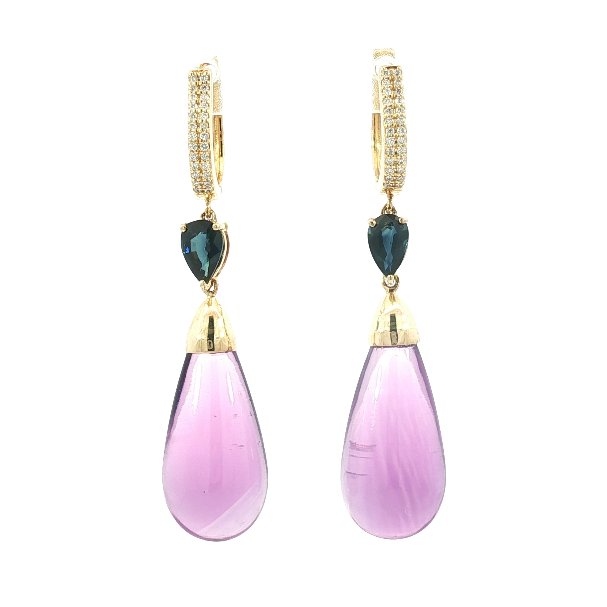 18K Yellow Gold Pear-Shaped Amethyst & Sapphire Diamond Drop Earrings