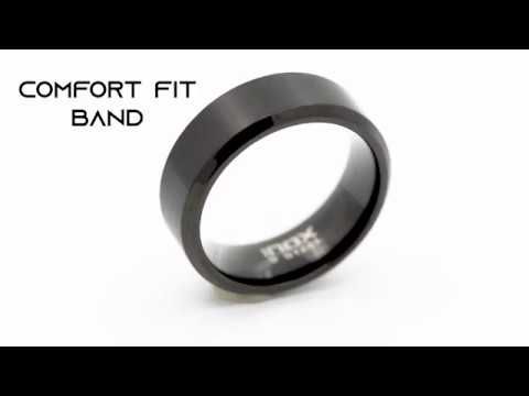For a super-cool (and affordable!) spin on the classic wedding band, try this 6mm-wide stunner in Black-IP-plated Stainless Steel. It features a sleek brushed center and a glossy beveled edge, and comfort-fit - plus, it comes in sizes 9 to 12!
