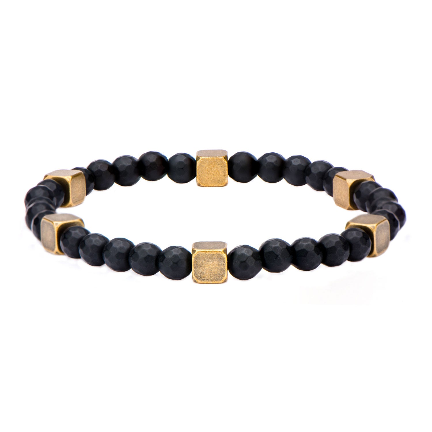 Black Hematite with Antique Gold Brass Beads Bracelet