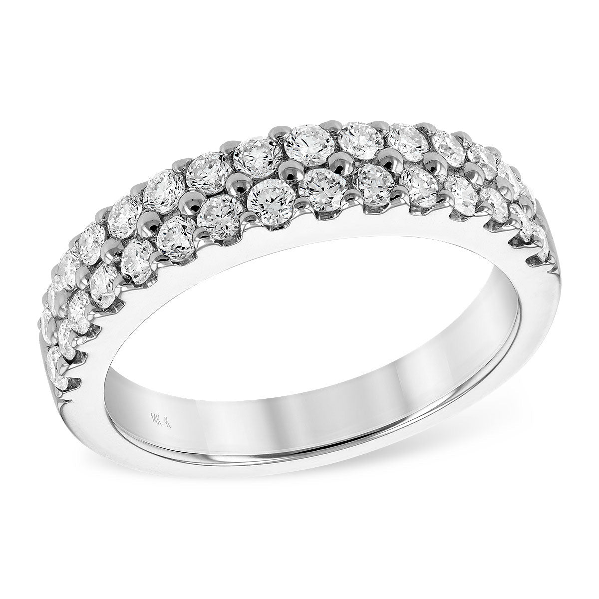 Classic 14K White Gold Double Row Shared-Prong Diamond Wedding Band