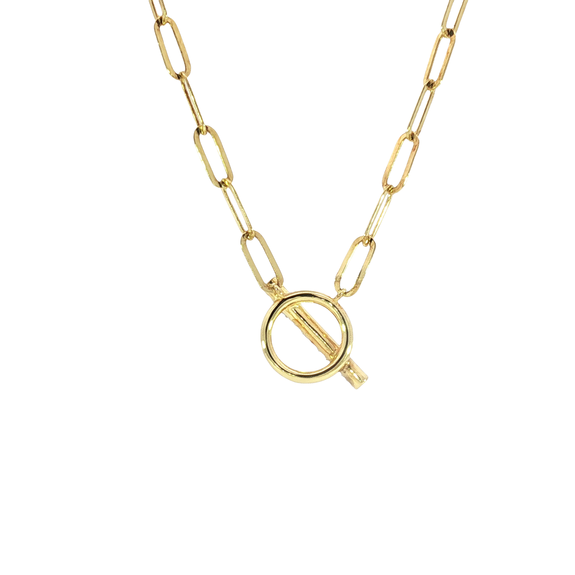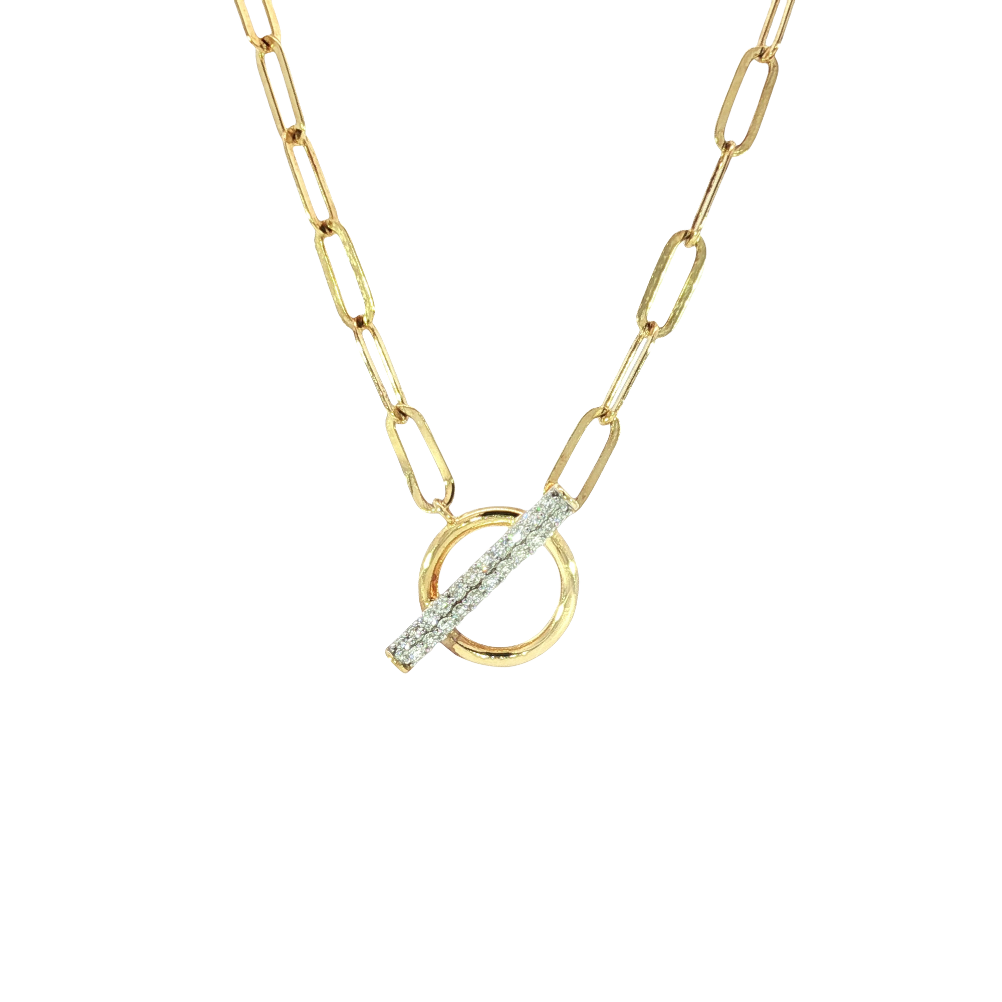 Elevate your style with this stunning gold-plated sterling silver 16-inch chain necklace with a 2-inch extender. This radiant chain features a secure T-bar closure adorned with brilliant round-cut diamonds. The unique design adds a touch of modern elegance, perfect for adding sparkle to any ensemble.