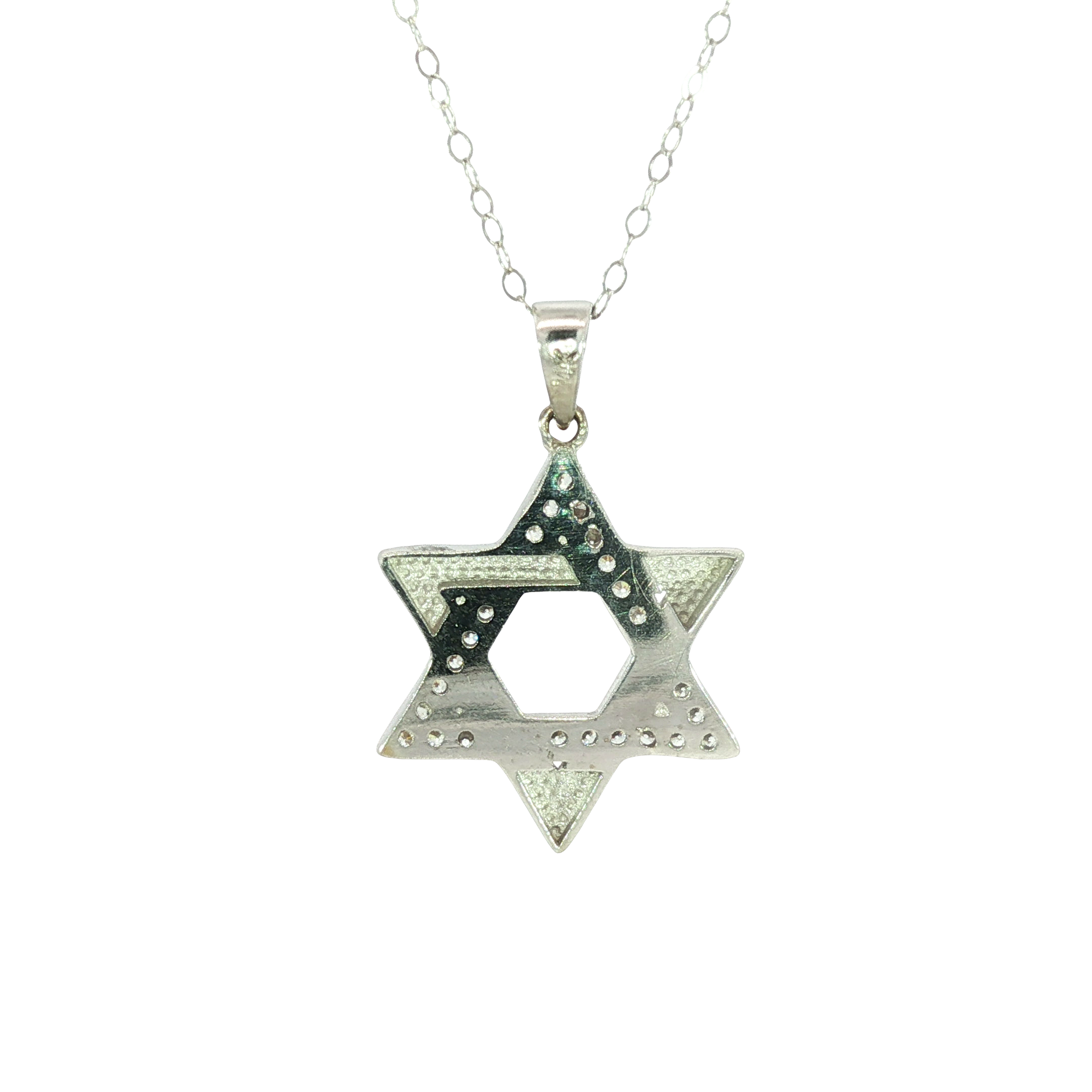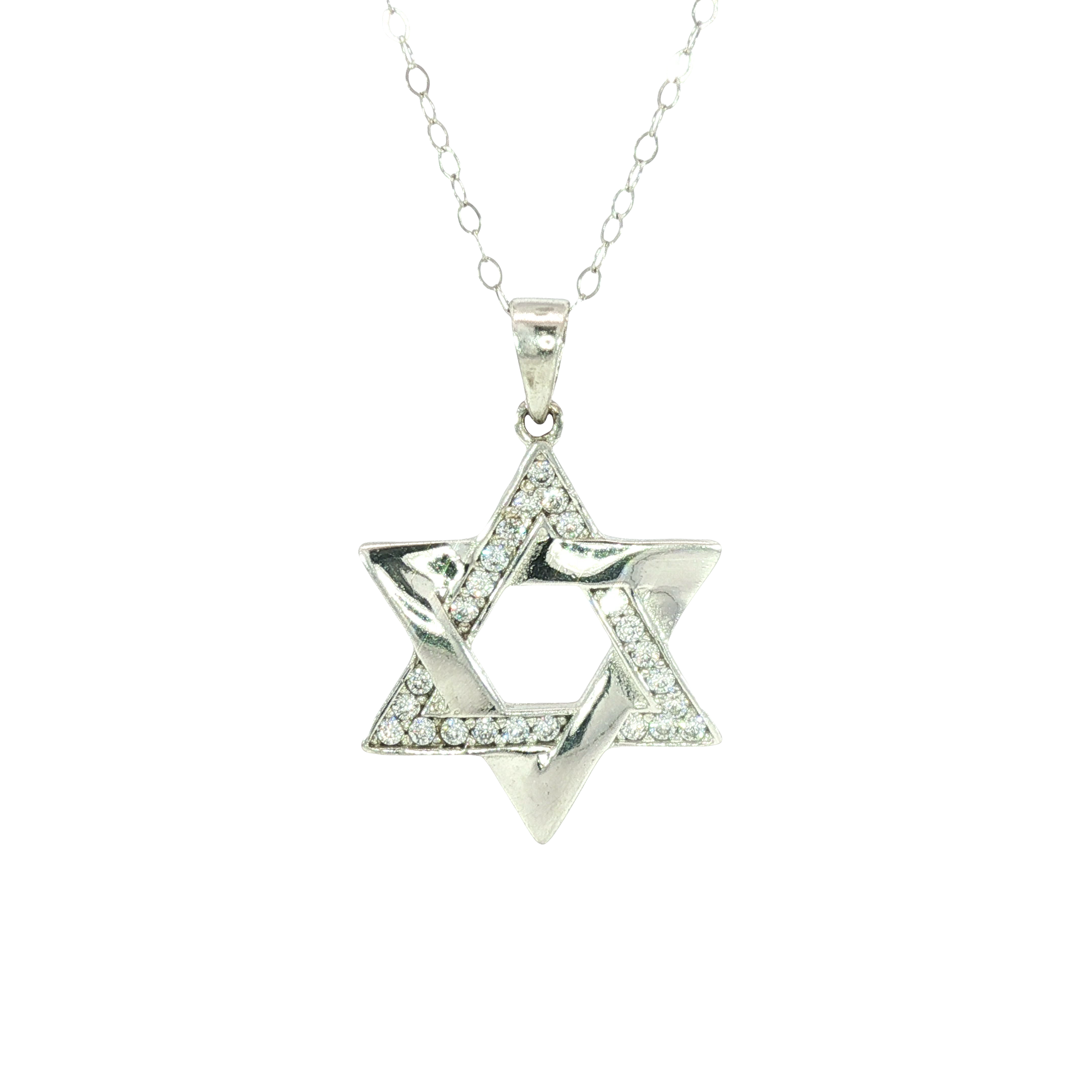 This exquisitely crafted charm necklace features a classic Star of David pendant, meticulously set with colorless diamonds in a brilliant round cut. The pendant is suspended from a delicate 14K white gold chain, showcasing impeccable symmetry and polish. A timeless piece blending spiritual significance with sophisticated elegance.