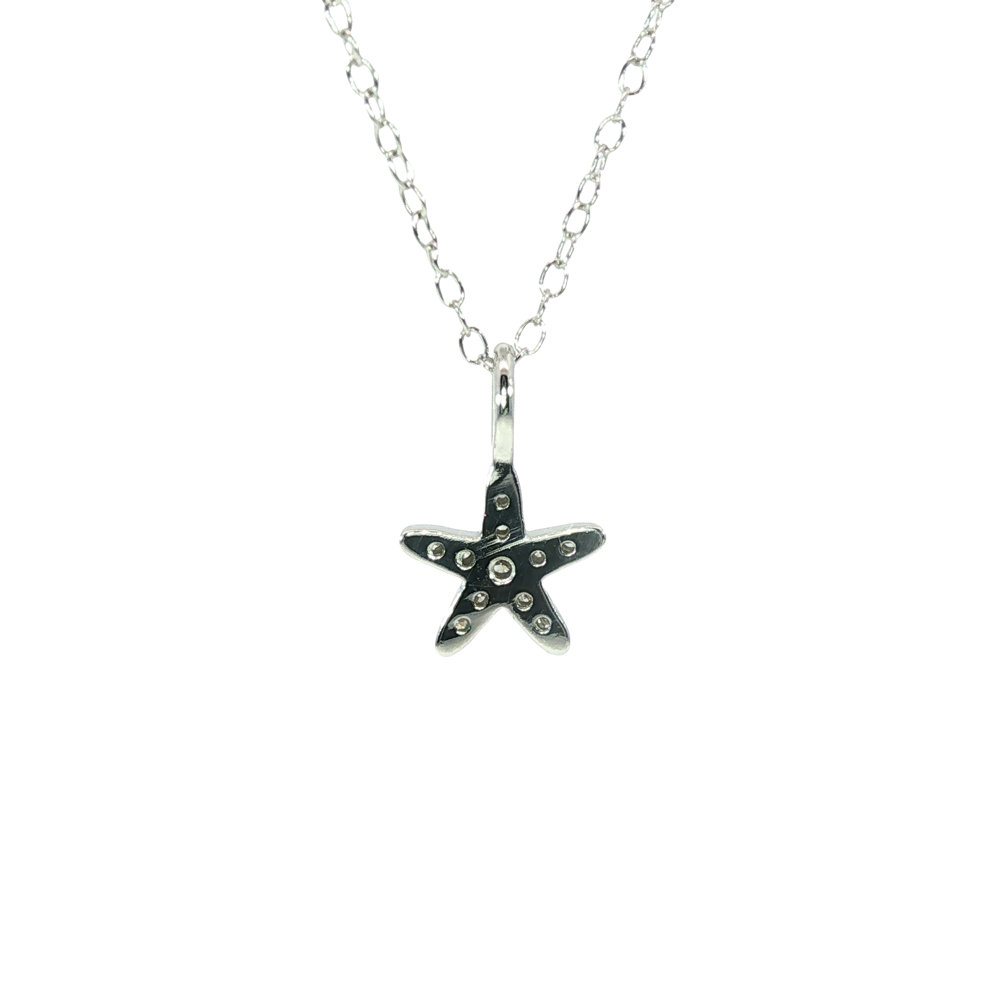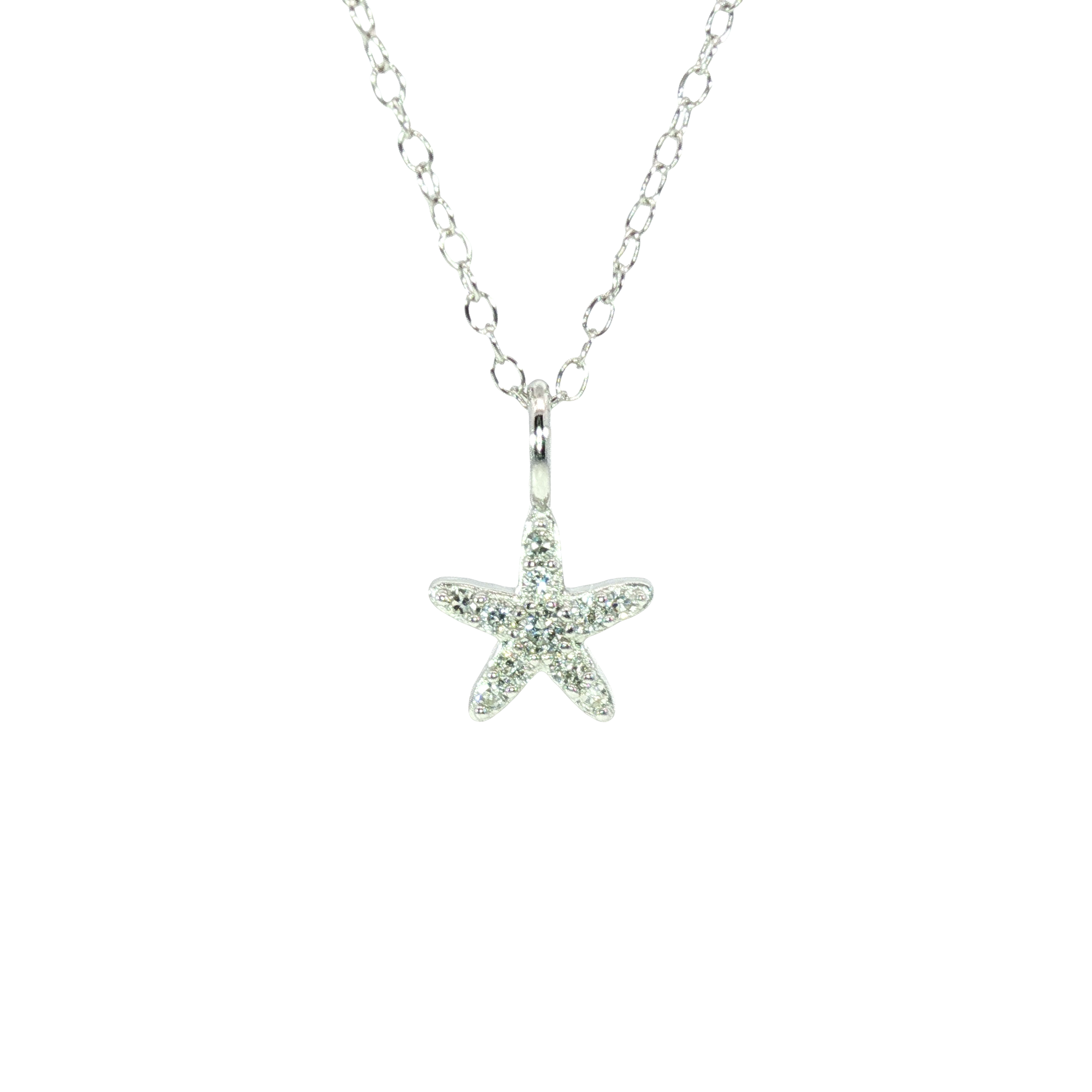 This stunning starfish pendant necklace in sterling silver captures the essence of the ocean with its intricate design and sparkling details. Crafted from high-quality materials, it adds a touch of elegance to any outfit, making it perfect for both casual and formal occasions.