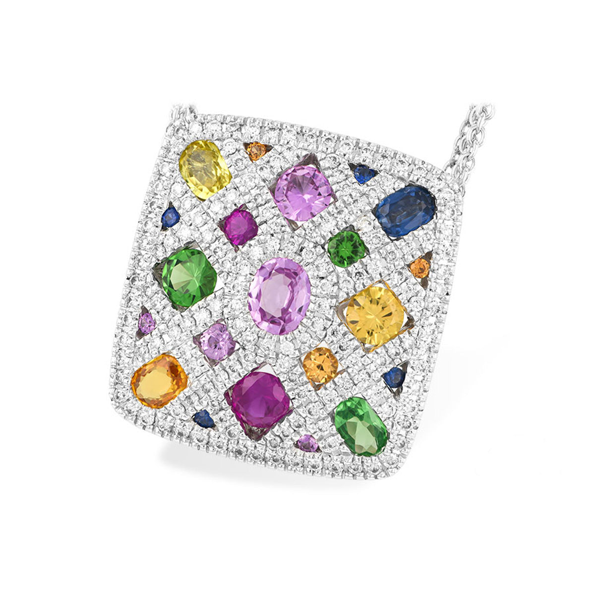 Fancy 14K White Gold Multicolor Gemstone Checkerboard & Diamond Pendant