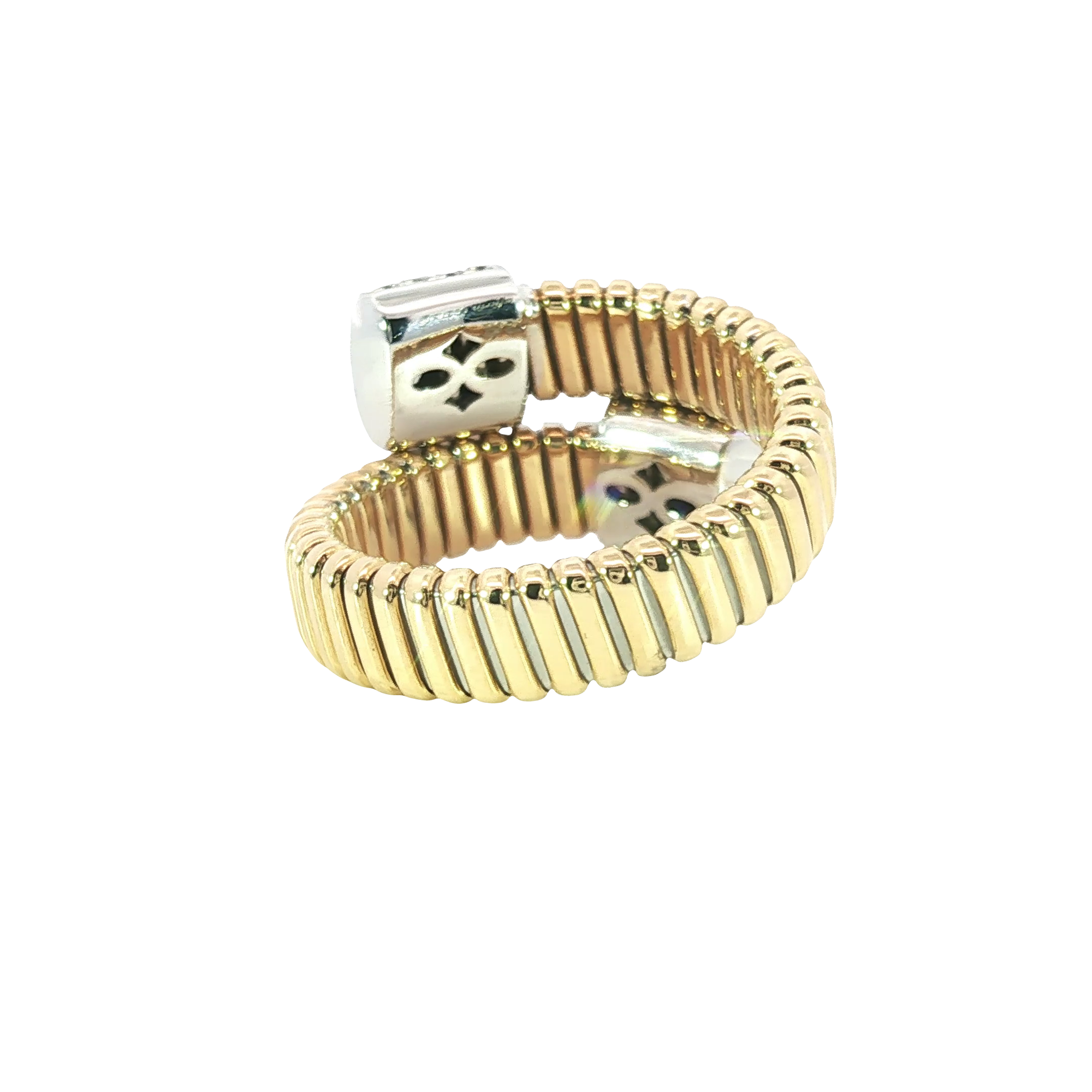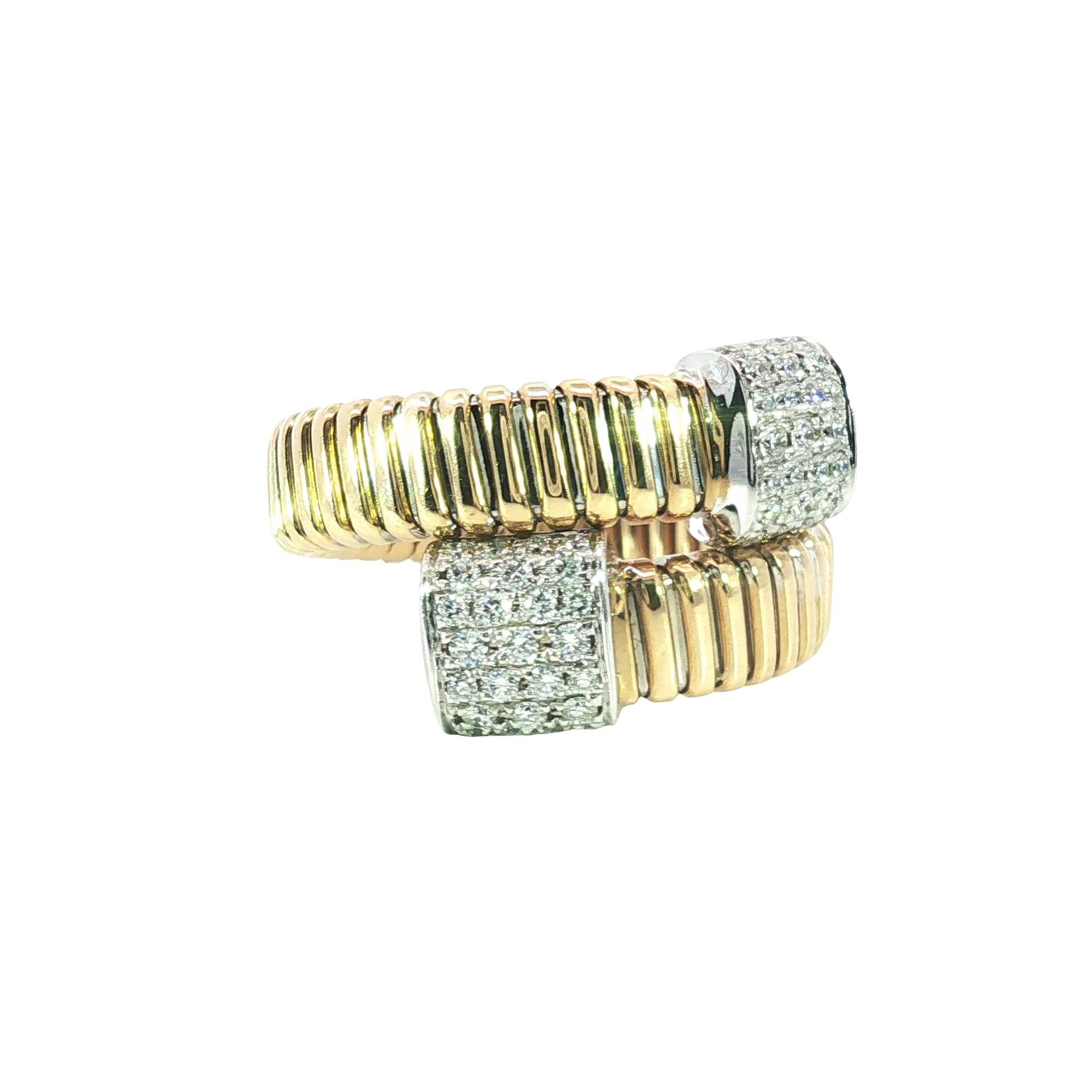 Flexible 18K Two-Tone Yellow Gold Band Ring with Round Cut Diamonds