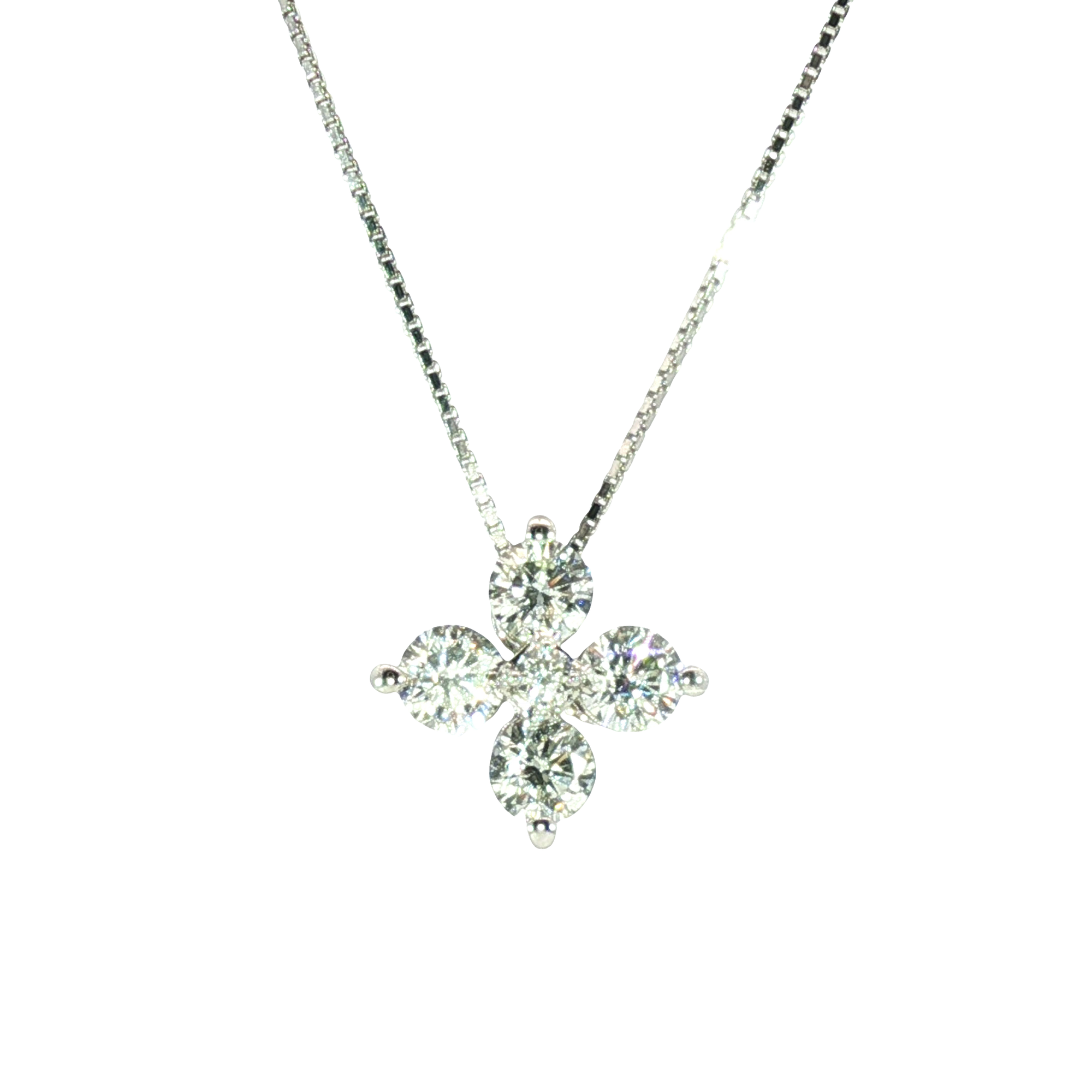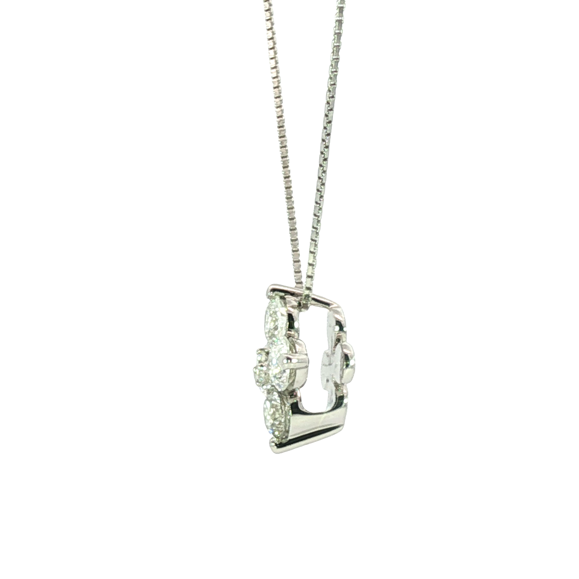 Embrace timeless elegance with this exquisite diamond necklace. Crafted in lustrous white gold, the necklace features a delicate floral design, each petal adorned with a round brilliant cut lab grown diamond. This graceful necklace showcases exceptional craftsmanship and understated sophistication, perfect for adding a touch of sparkle to any ensemble.
