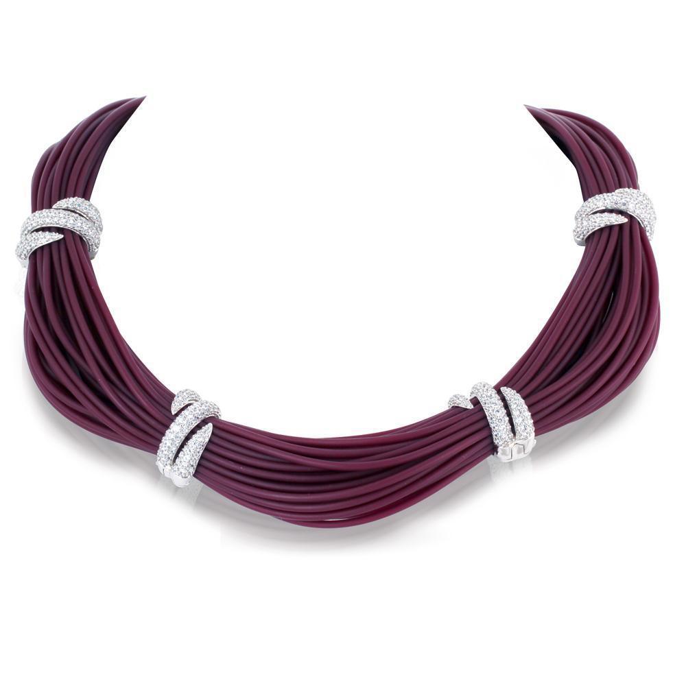 Feel empowered with Forza by Belle Etoile. Elegant curls of stone-encrusted sterling silver surround sinuous fibers of Italian rubber, signifying the strength and power in beauty. This high-fashion, high-quality designer set embodies a style for the high-powered woman