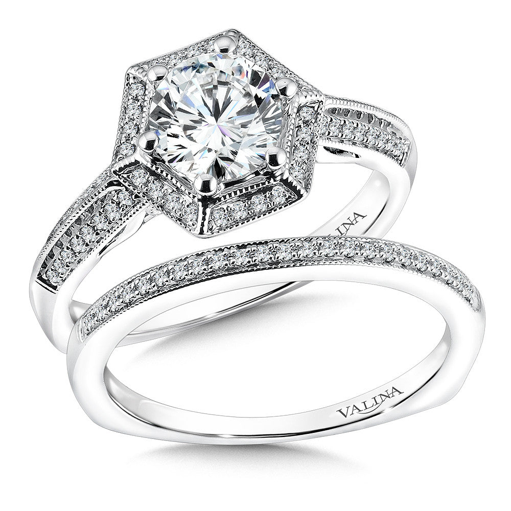 This Geometric Shape Halo Diamond Engagement Ring is a true masterpiece, crafted to perfe caration. The 14K white gold band features an antique cushion shape double halo, which surrounds the center stone in a Deco-inspired diamond design. Adding to its allure, two diamond rows in a beveled shoulder flank the sides, while milgrain accents decorate the ring in this vintage style. The ring is designed with an exquisite attention to detail and a focus on elegance and sophistication. It is the perfe carat way to express your love and commitment to your partner and make her feel special. With its impeccable craftsmanship and striking beauty, this engagement ring is sure to be cherished for a lifetime.