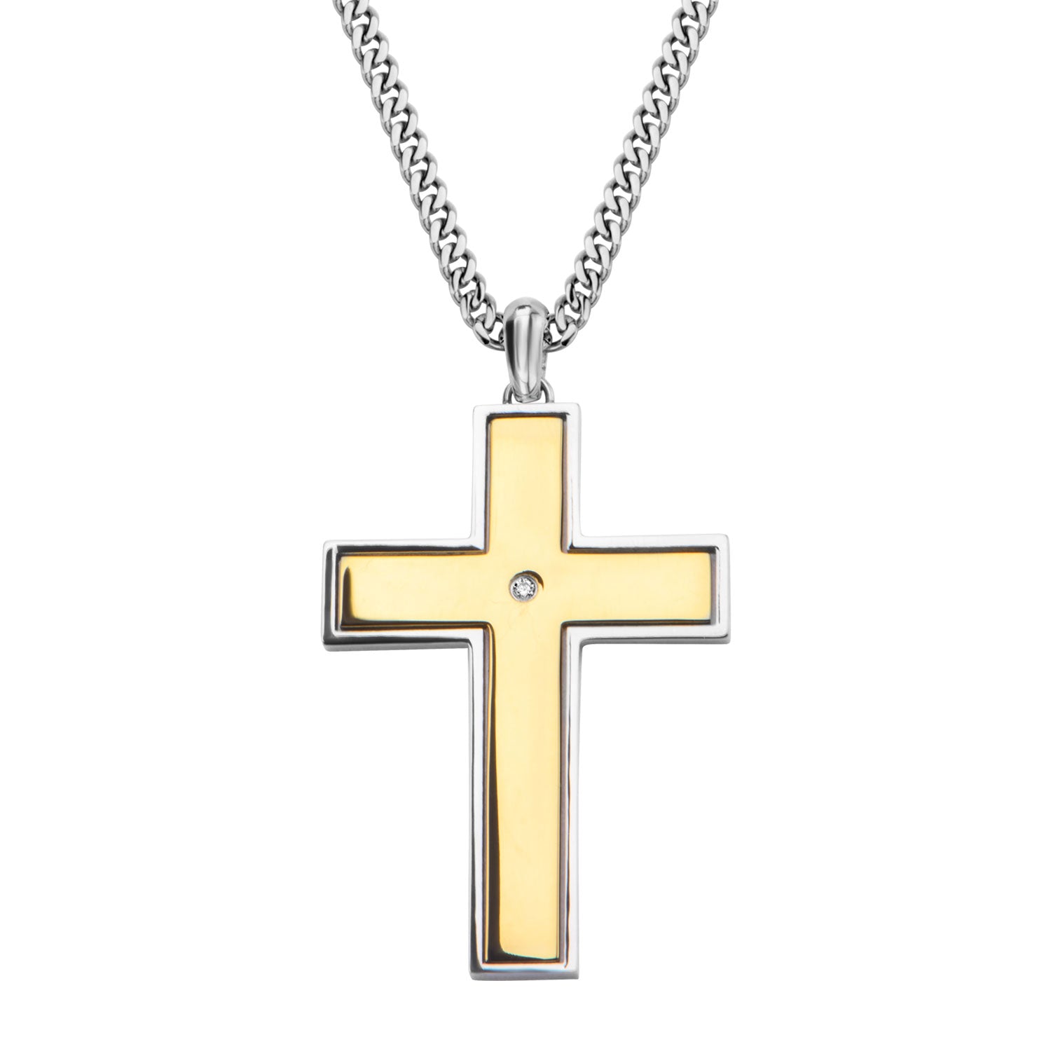 Gold Plated Lord's Prayer & Spinner Cross Two-Tone Pendant with Chain Necklace