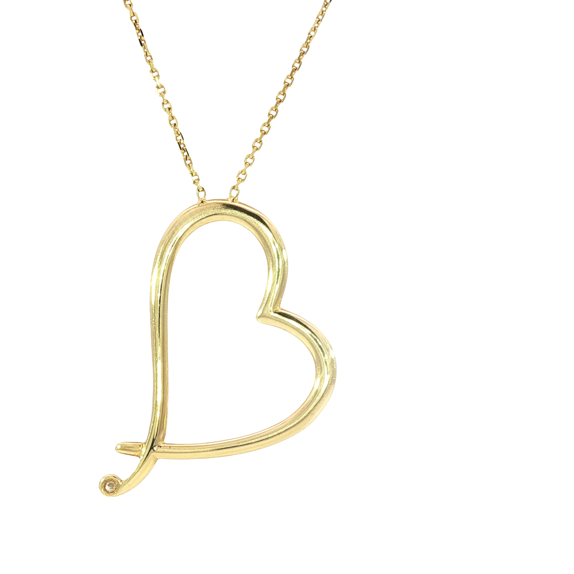 Heart Pendant Necklace with Round Cut Diamond in 14K Yellow Gold