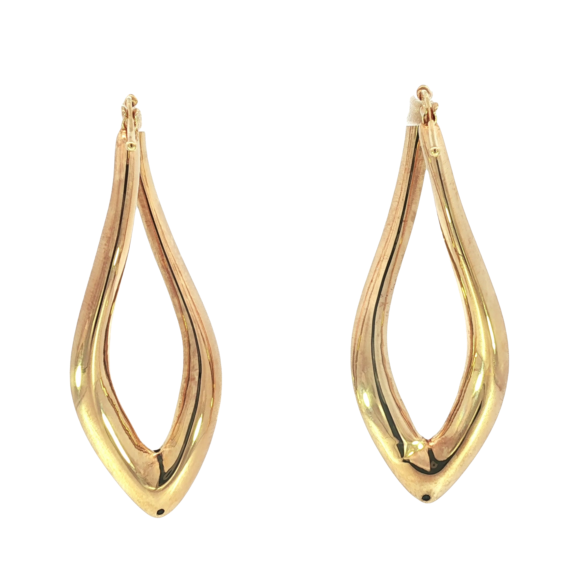 Elevate your style with these captivating dangle earrings. Crafted from lustrous 14K yellow gold, they feature a unique open teardrop design. The earrings offer a sleek and modern silhouette, perfect for adding a touch of sophistication to any ensemble. These earrings are a versatile accessory, transitioning seamlessly from day to night.
