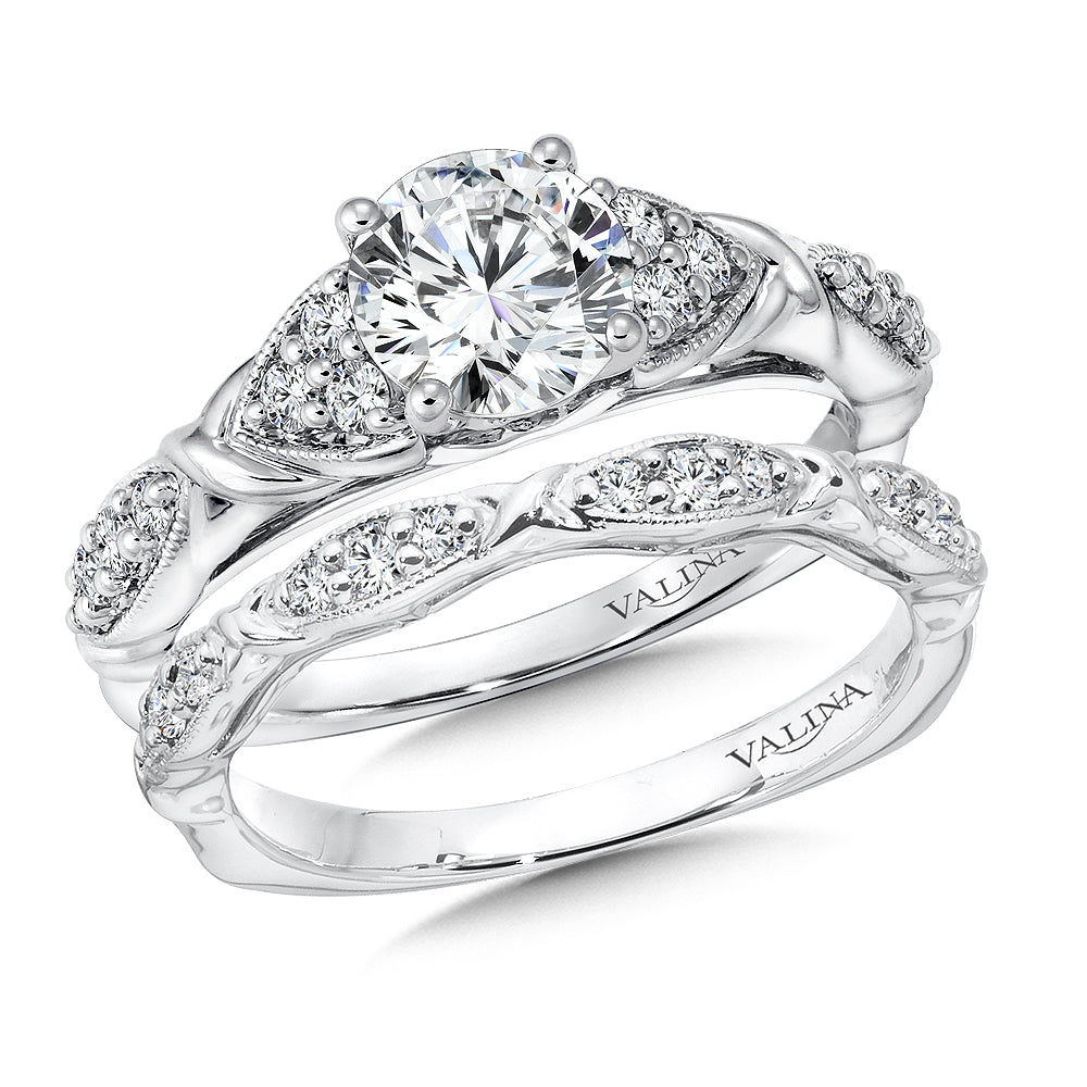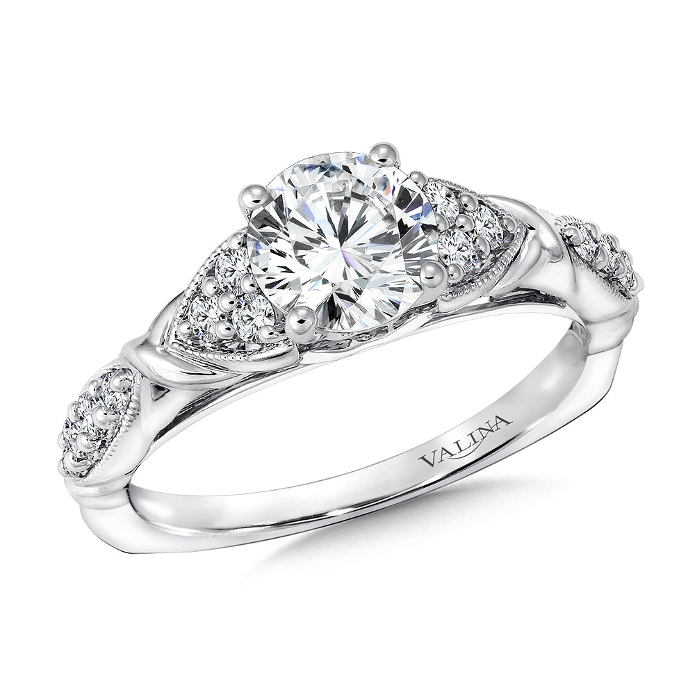 Pave Cluster Milgrain Diamond Engagement Ring