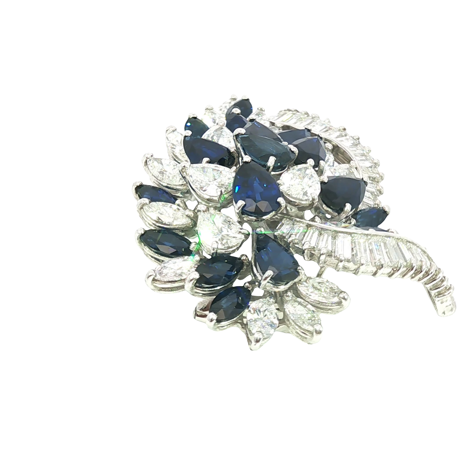Platinum Diamond & Deep Blue Sapphire Brooch