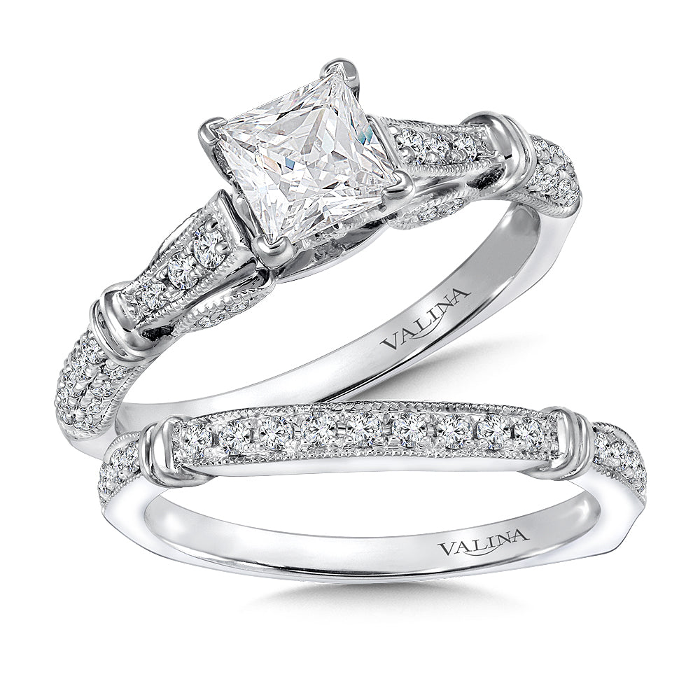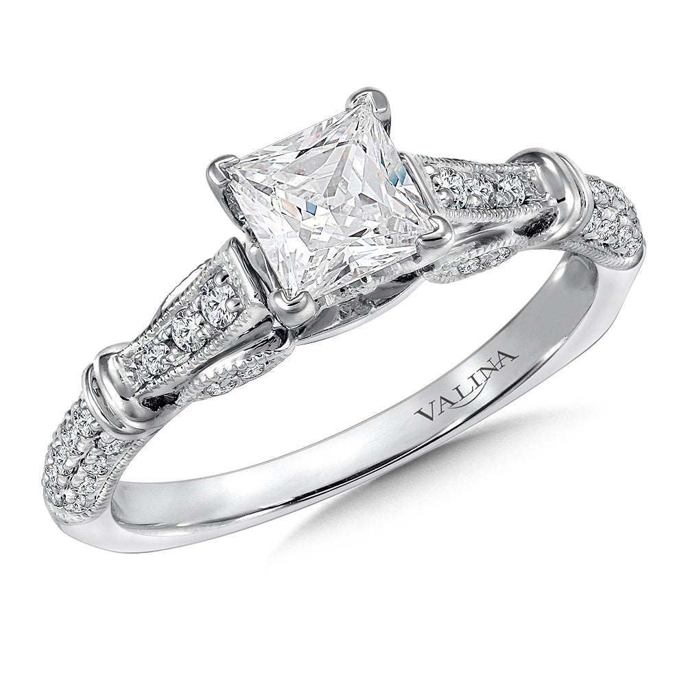 Polished Clip Milgrain Diamond Engagement Ring