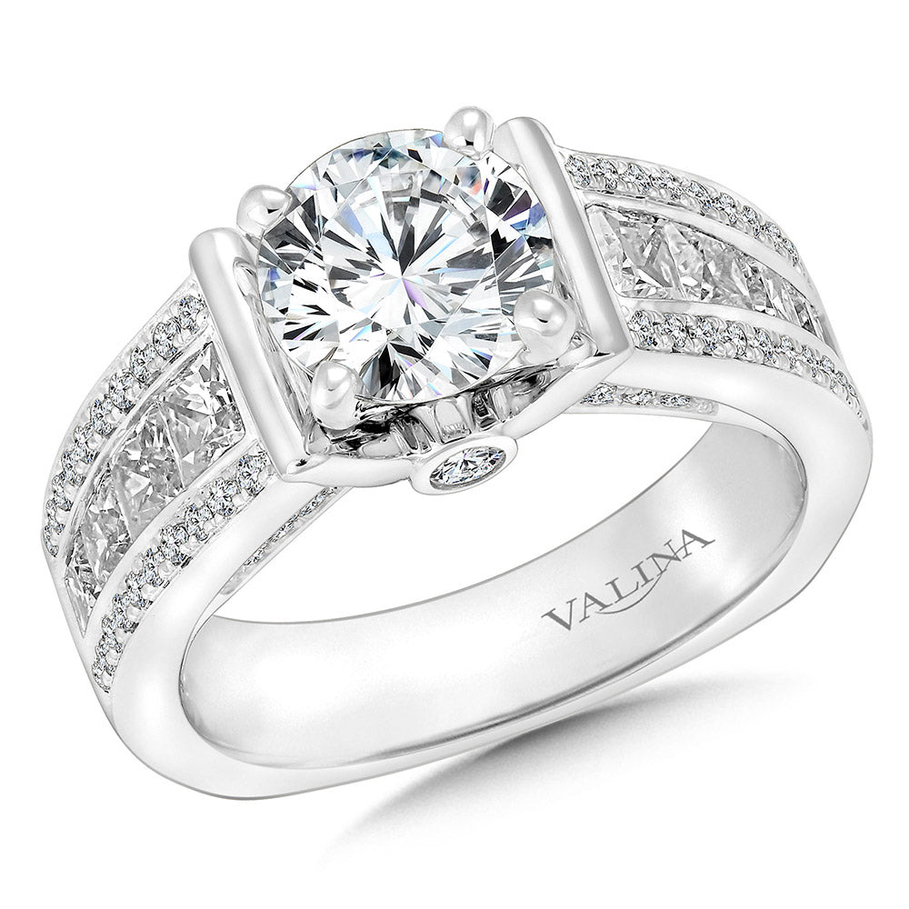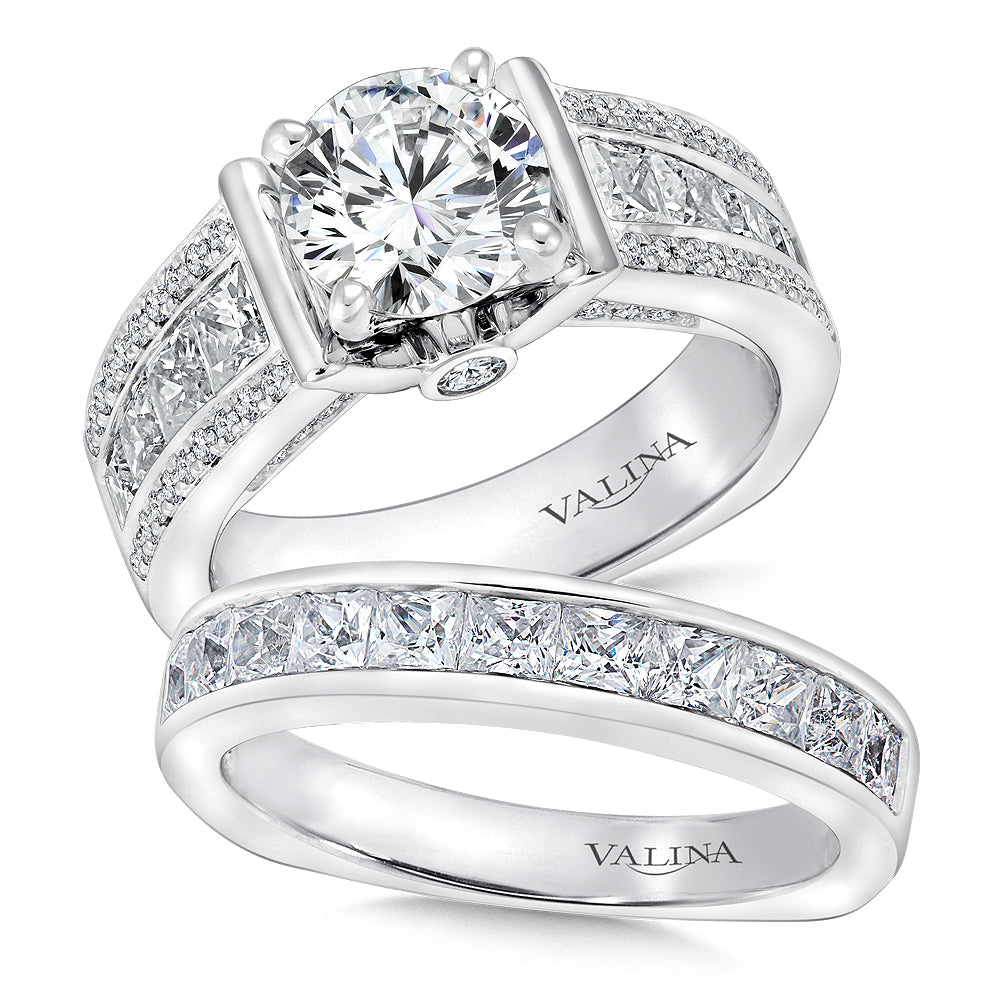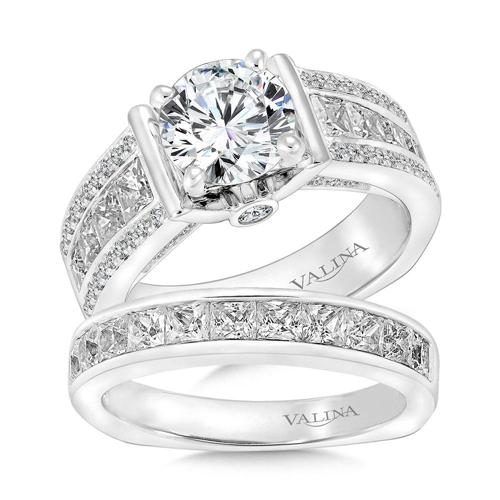 Princess Cut & Round Diamond Channel Pave Engagement Ring