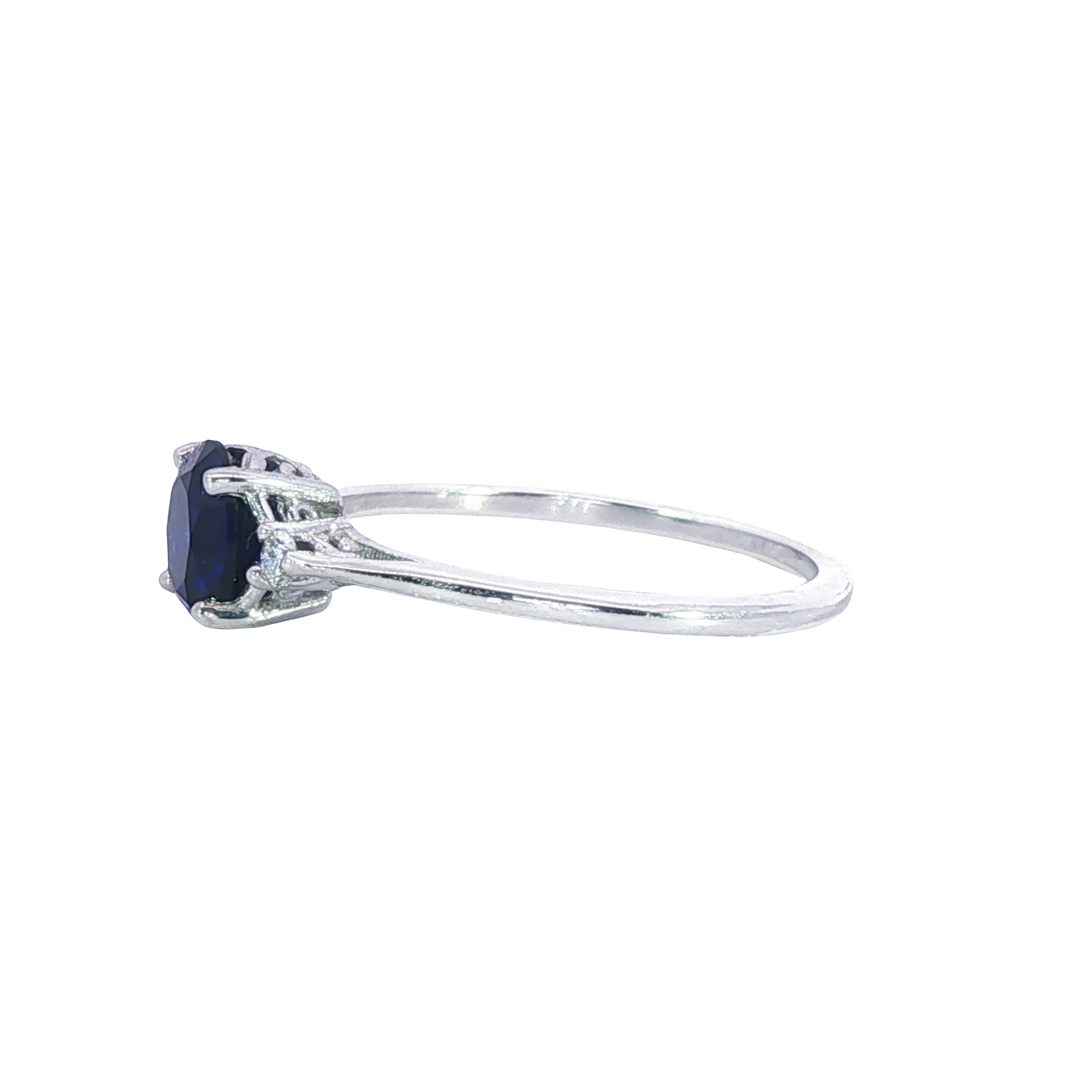Royal Blue Sapphire & Diamond Three-Stone Ring in Sterling Silver