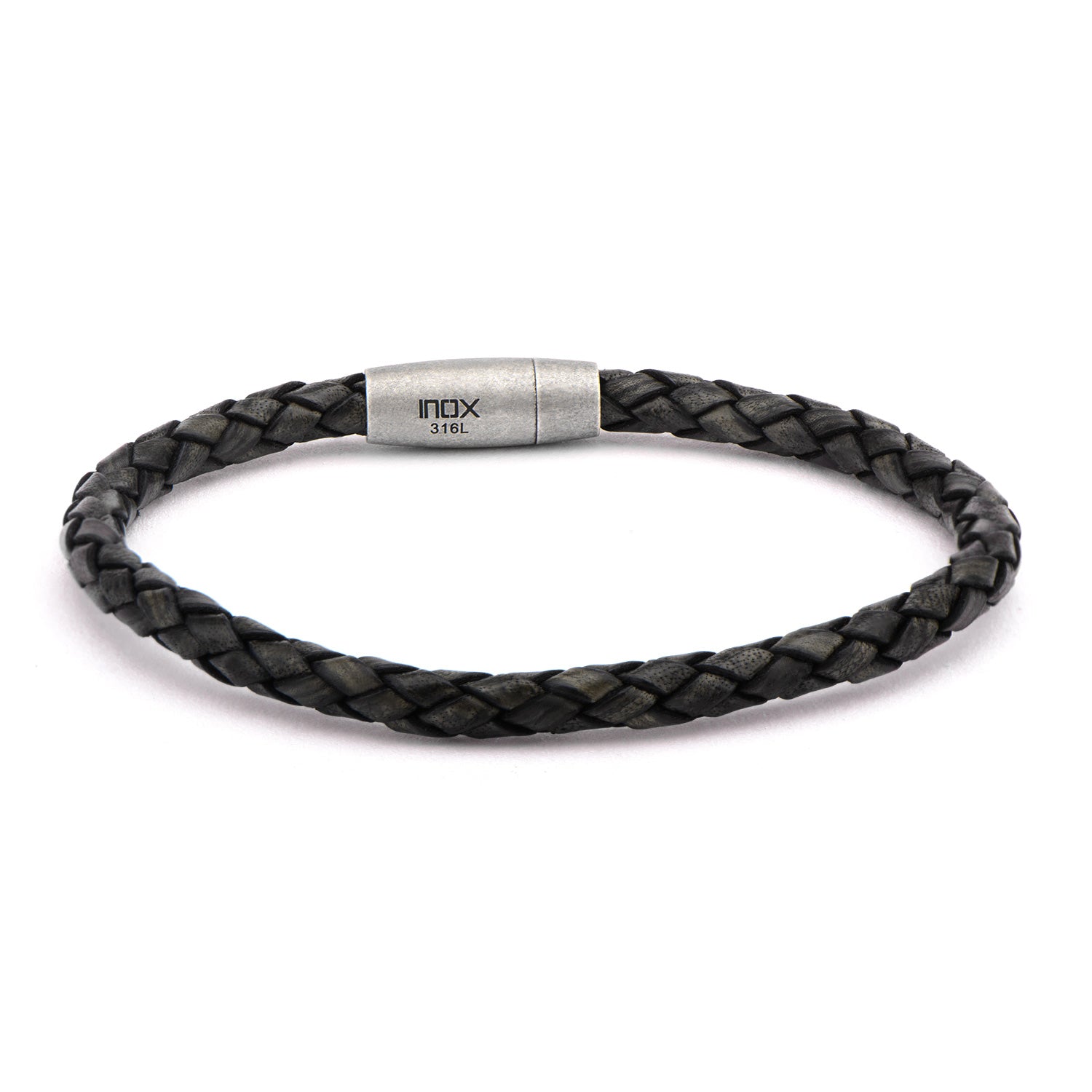 Single Round Black Braided Italian Antique Leather Bracelet