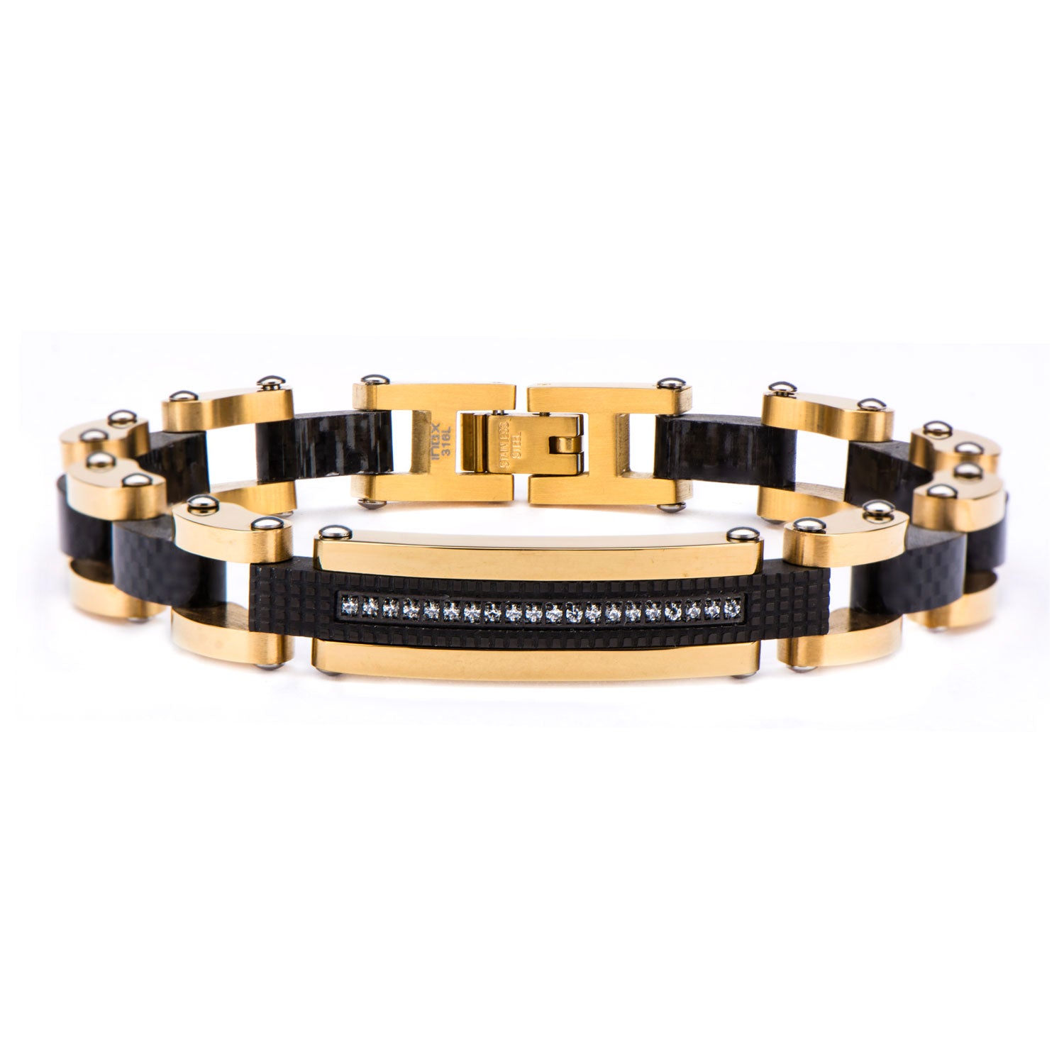 Solid Carbon Graphite & Gold Plated with Clear CZ Stone ID Link Bracelet
