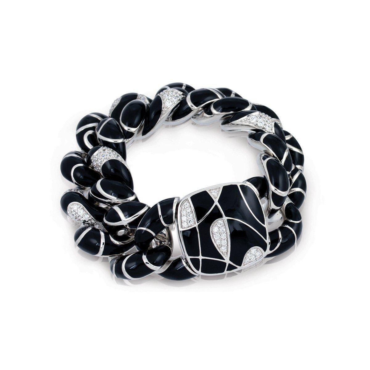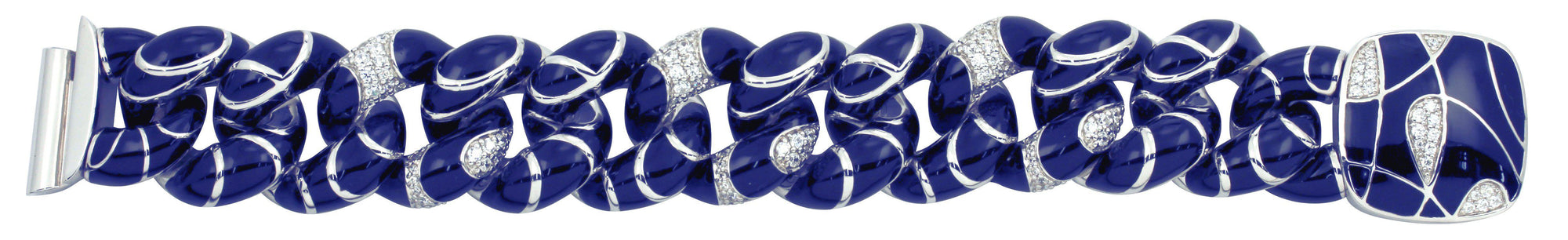 Hand-painted white Italian enamel with white stones set into links of rhodium-plated, nickel allergy-free, 925 sterling silver