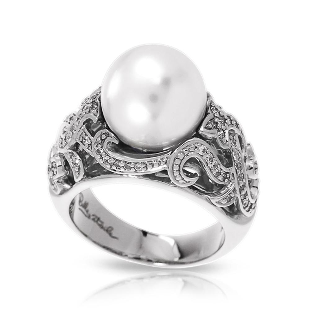 Description: Grey or white seashell pearl with pavé-set stones set into rhodium-plated, nickel allergy-free, 925 sterling silver