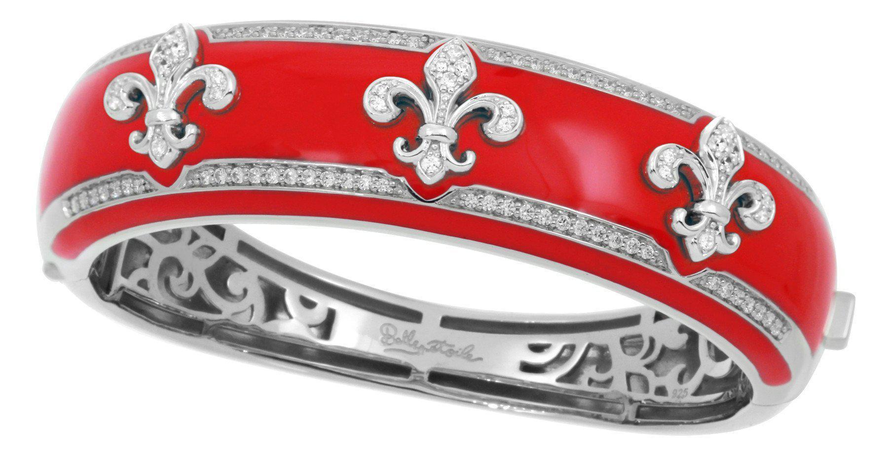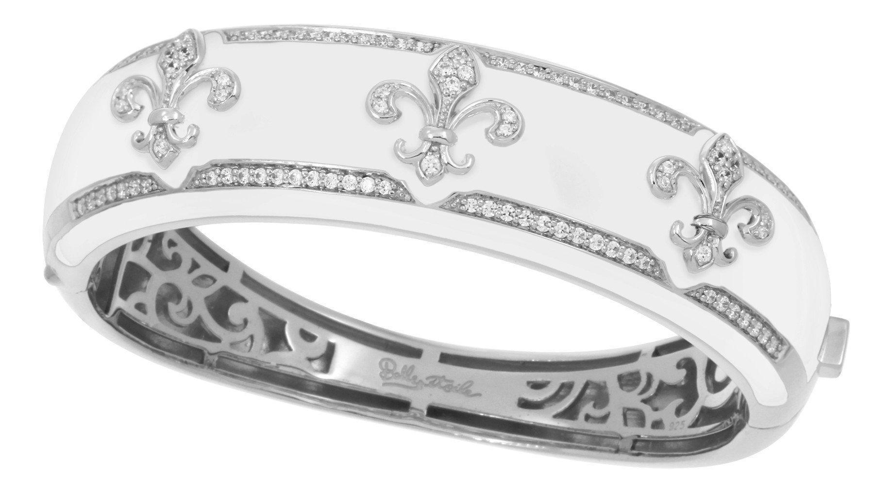 Fleur de Lis embodies the pure elegance and luxury of archetypal European flair. This gorgeous set merges clean lines with rich, sumptuous colors. Fleur de Lis will perfectly complement any ensemble, made of sterling silver, hand-painted Italian enamel, and pave-set stones