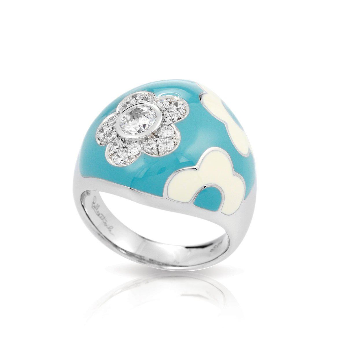 Simple and pure, Fleur is a celebration of nature's paintbrush. Belle Étoile's classic set features vibrant flowers of hand-painted enamel and sparkling stones on rhodium-plated sterling silver in an elegant expression of color and style.