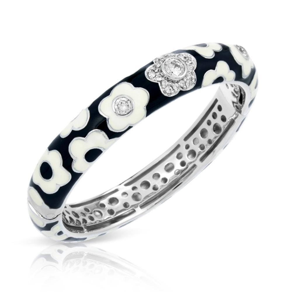 Black: Hand-painted Italian black and cream enamels with white stones set into rhodium-plated, nickel allergy-free, 925 sterling silver