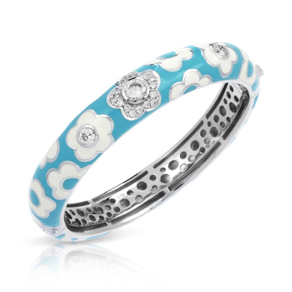 Simple and pure, Fleur is a celebration of nature's paintbrush. Belle Étoile's classic set features vibrant flowers of hand-painted enamel and sparkling stones on rhodium-plated sterling silver in an elegant expression of color and style.