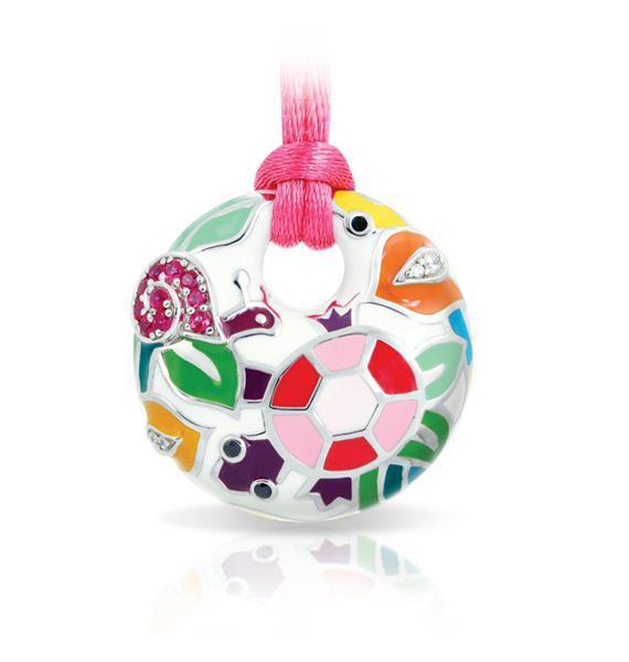 Discover nature's diversity arrayed in vivid hand-painted enamels. Galapagos from Belle Étoile features fanciful snails, stately turtles, and slender snakes adorned with glittering stones and set on the finest rhodium-plated sterling silver. Satisfy your sense of adventure and explore this colorful animal menagerie