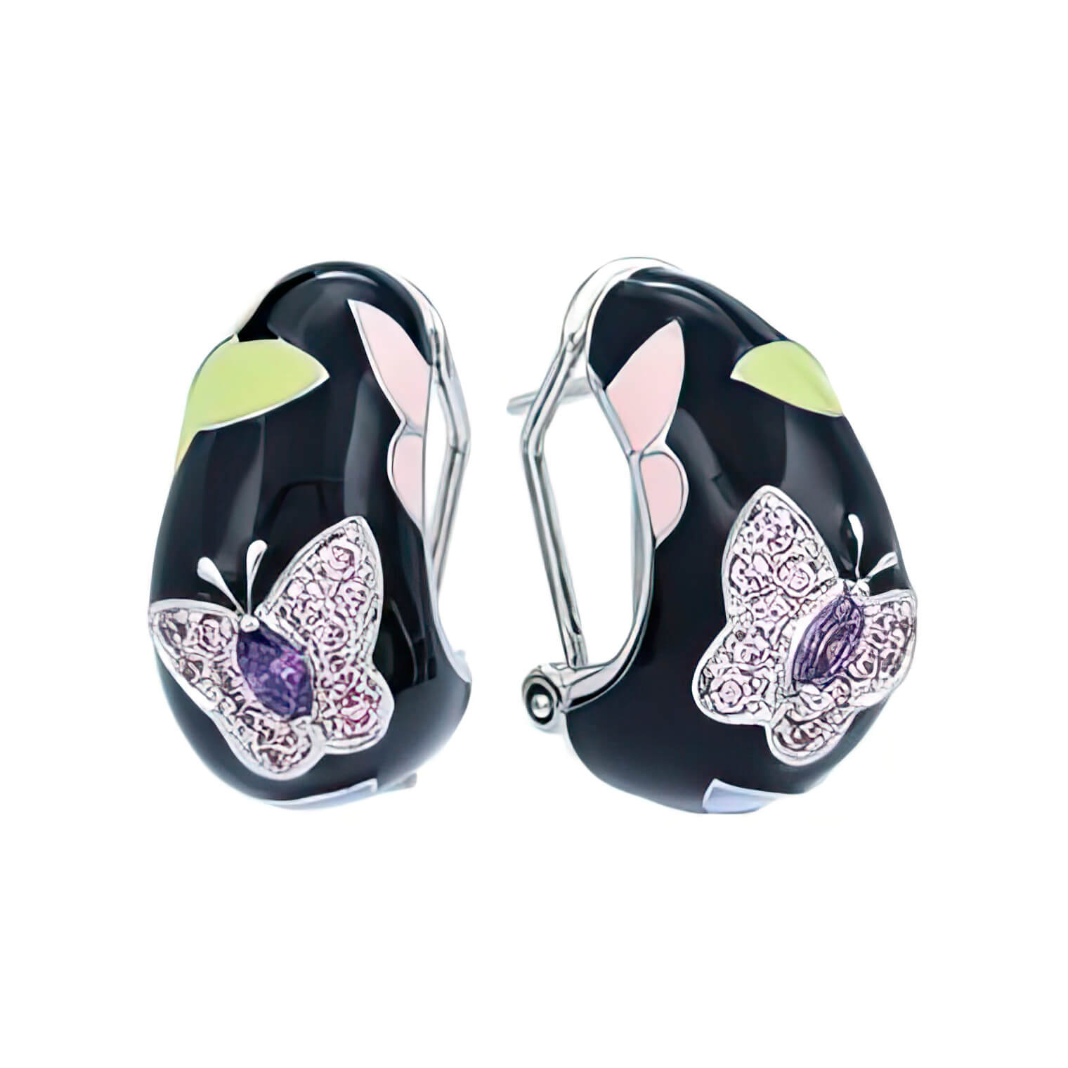 Description: Hand-painted multi-colored Italian enamels with pink and amethyst stones set into rhodium-plated, nickel allergy-free, 925 sterling silver