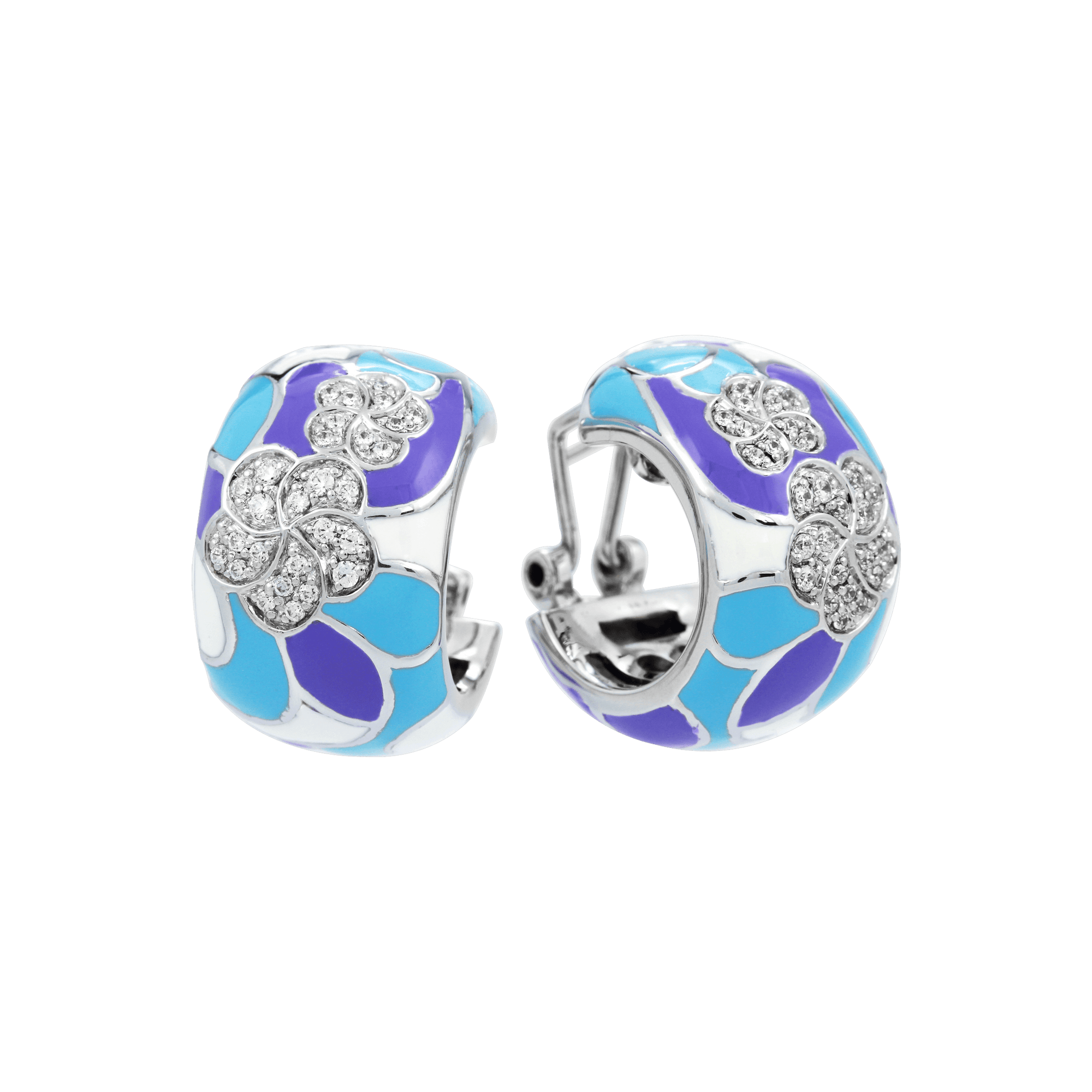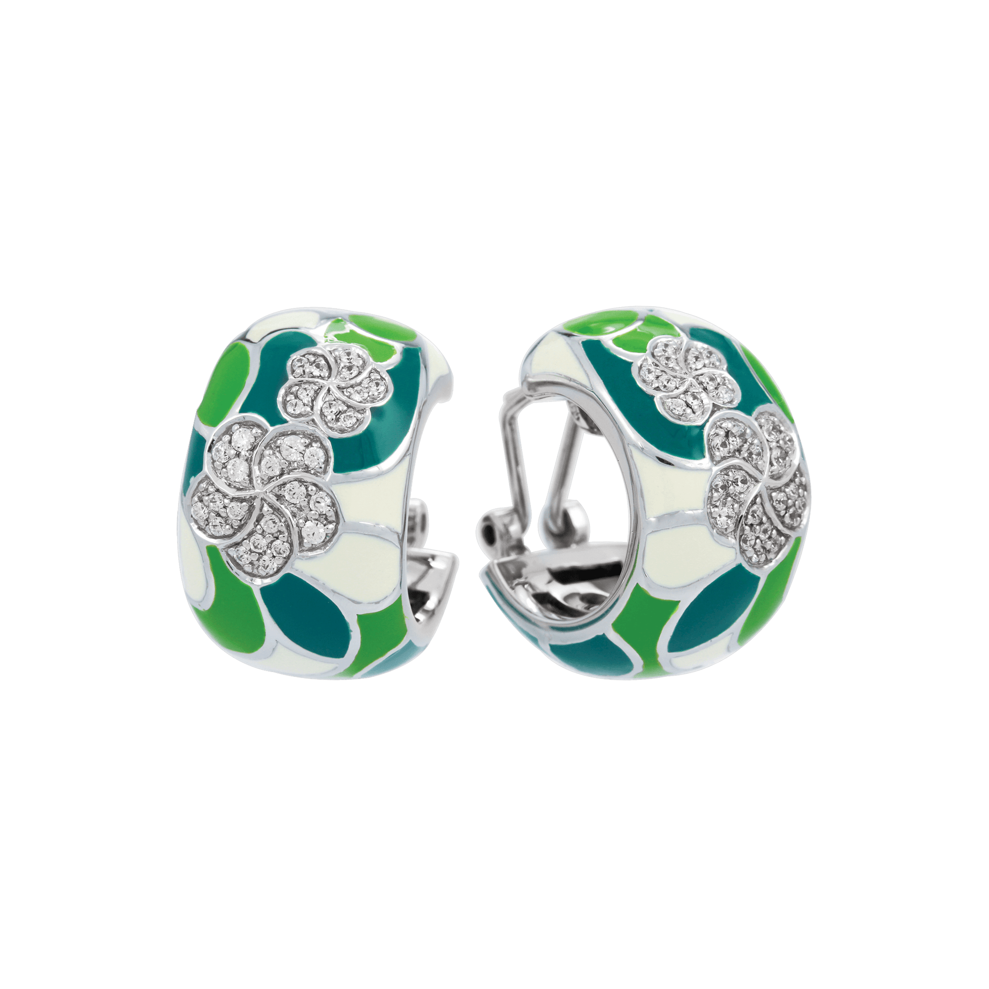 Hand-painted green and cream Italian enamels with white stones set into rhodium-plated, nickel allergy-free, 925 sterling silver.
