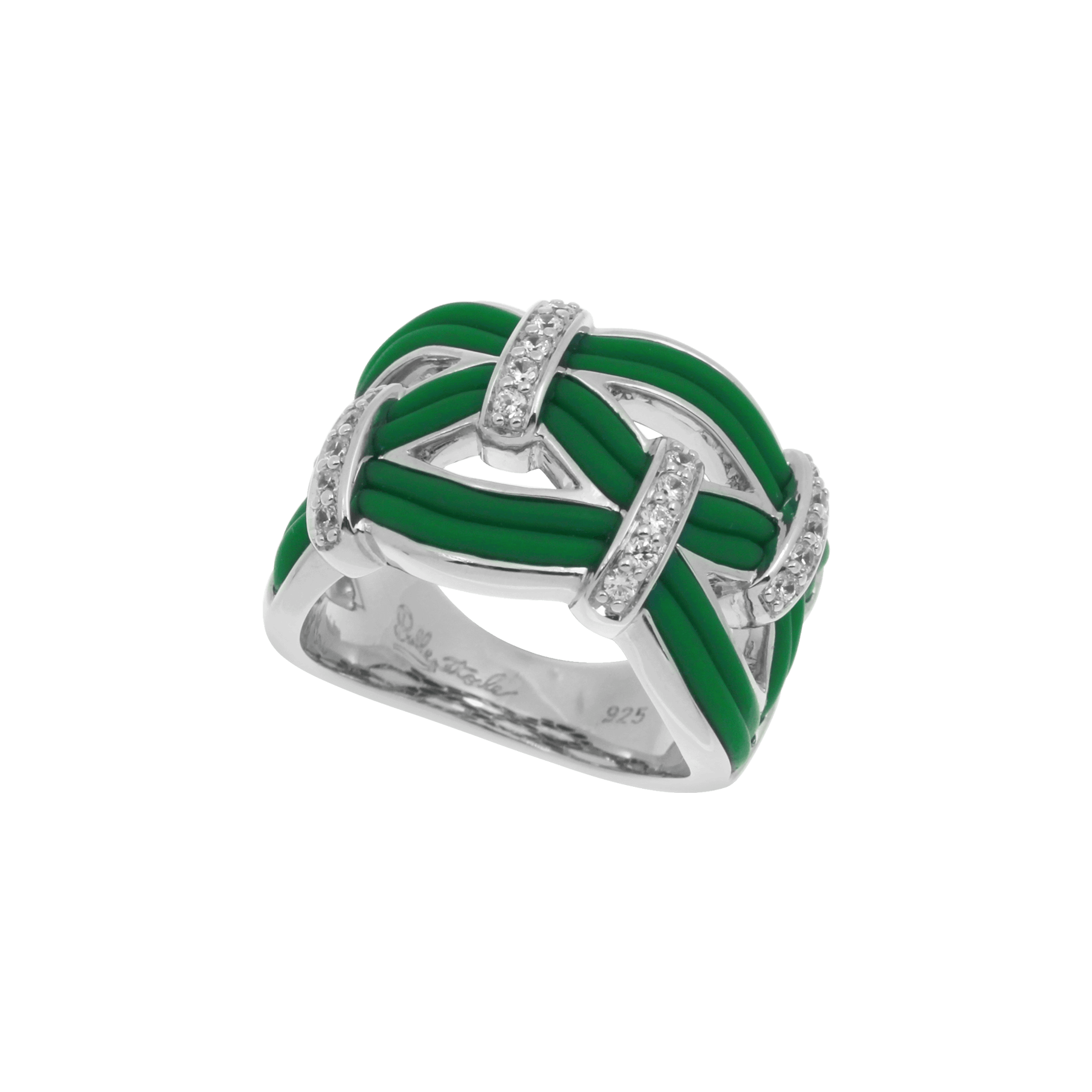 Green: Hand-strung green Italian rubber with white stones set into rhodium-plated, nickel allergy-free, 925 sterling silver