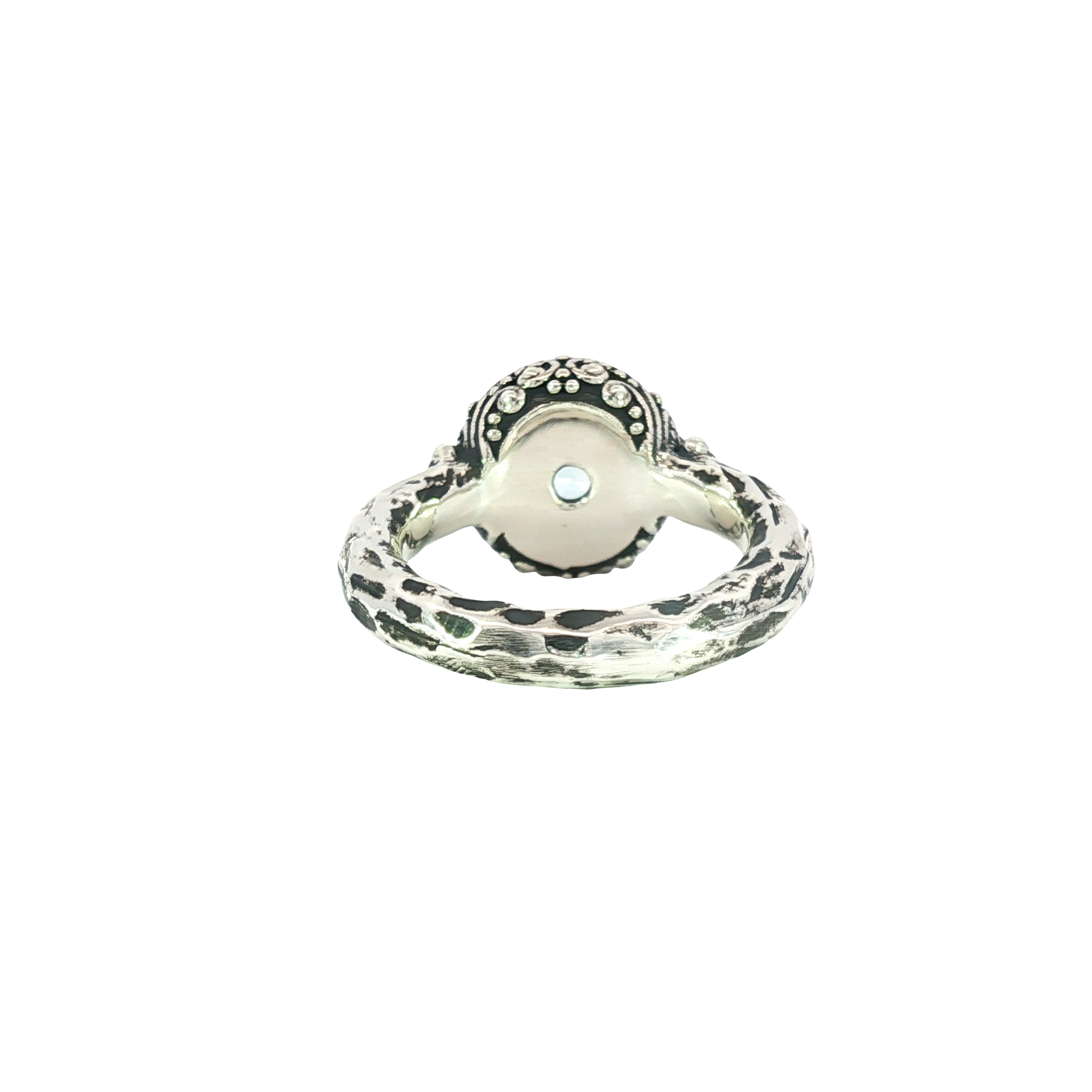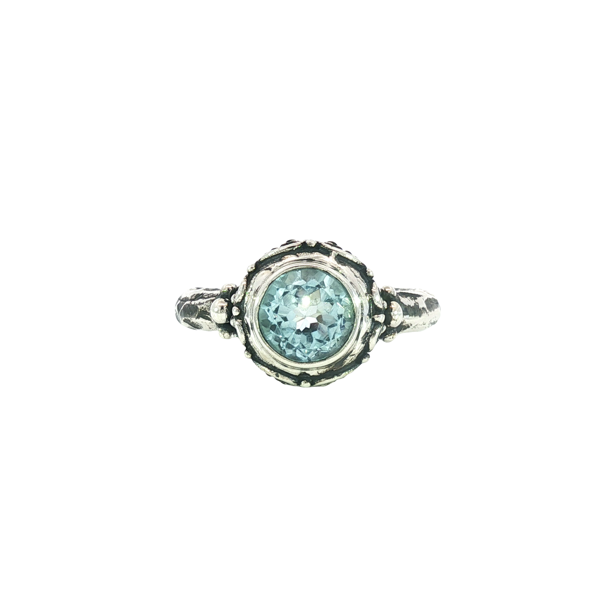 Sterling Silver Round Aquamarine Hammered Stackable Ring